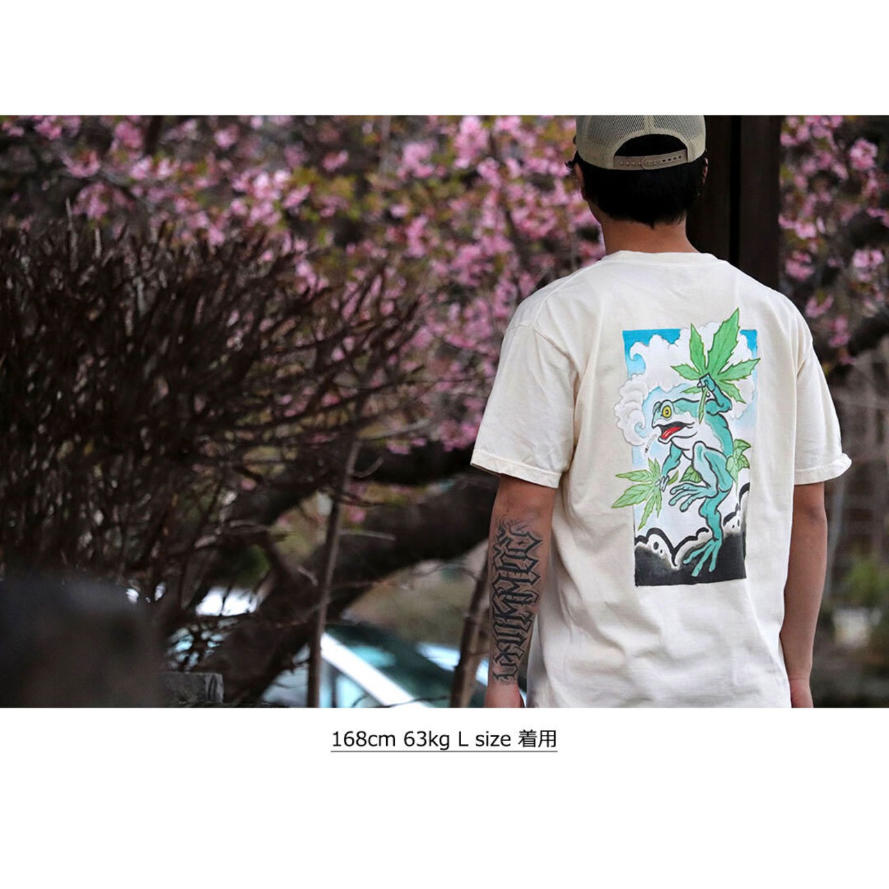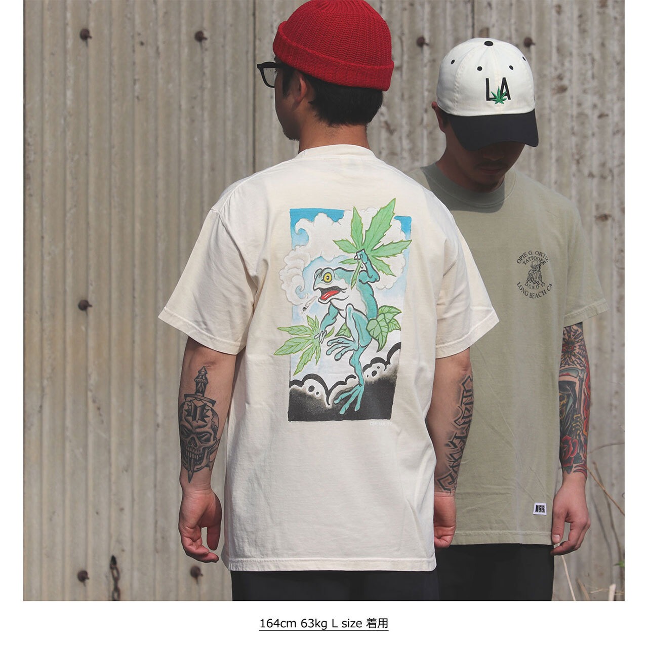 055 (LINKAGE) Opie Ortiz Frog T-SHIRT バックプリント カエル Tシャツ usaコットン ピグメント tシャツ ストリート バックプリント カエルTシャツメンズ プリント クルーネック メンズ 半袖 ブランド 綿 おしゃれ グラフィック ウォッシュ加工