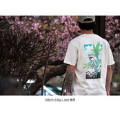 バックにインクジェットプリントでアートワークが配されたTシャツになります。