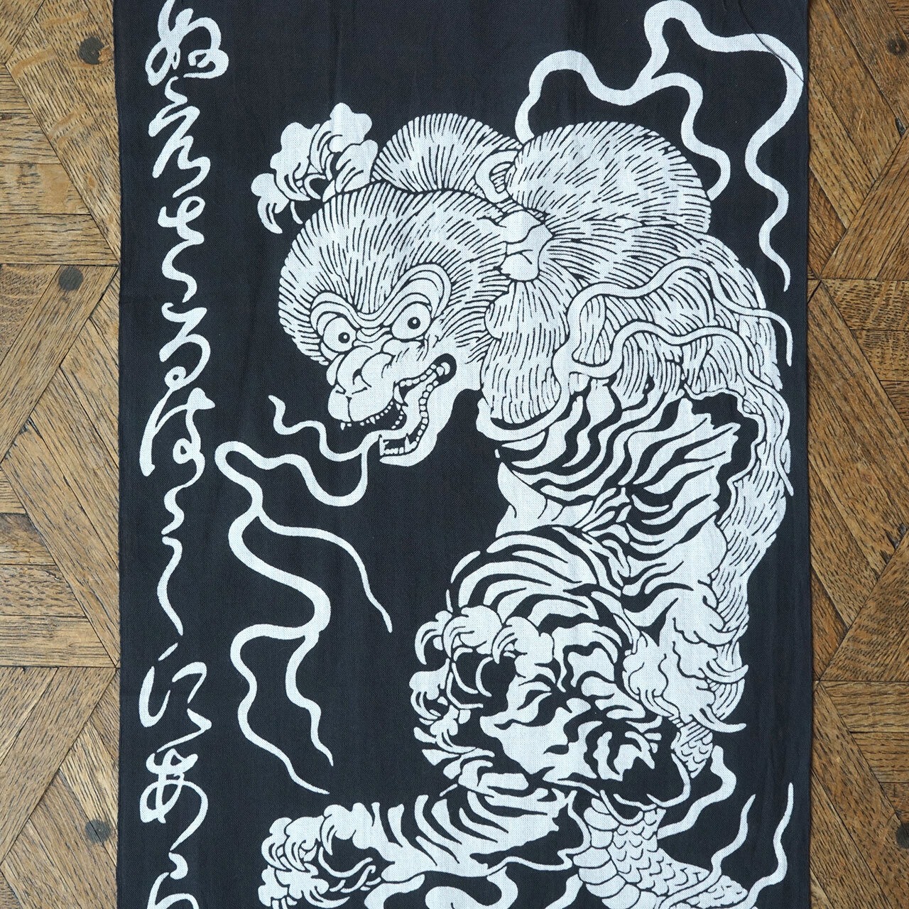 伝統刺青の彫り師による手描きの柄を日本の伝統的な染工技術、注染によって全てを手作業で仕上げた日本手ぬぐいです。