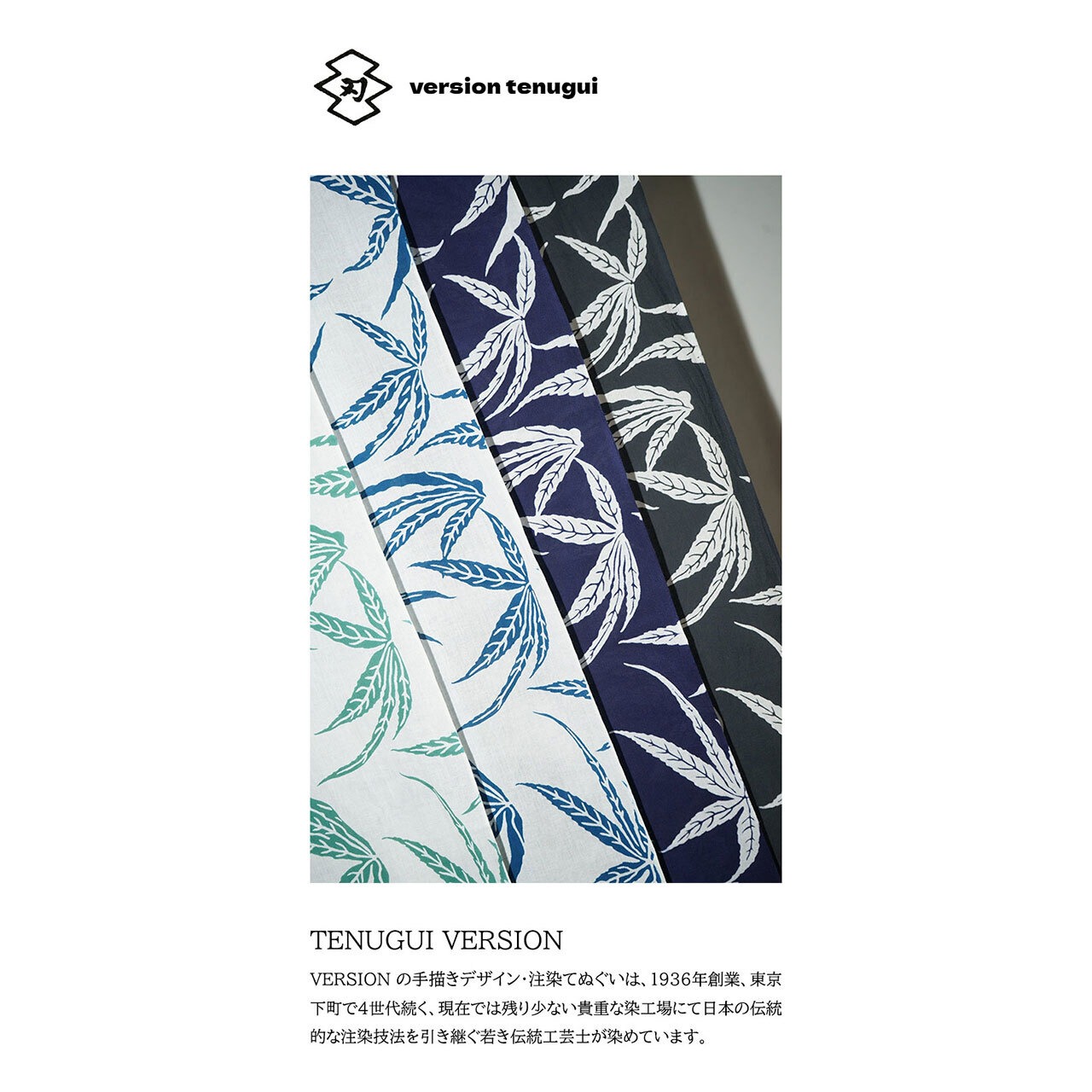 VERSION の手描きデザイン・注染てぬぐいは、1936年創業、東京下町で4世代続く、現在では残り少ない貴重な染工場にて日本の伝統的な注染技法を引き継ぐ若き伝統工芸士が染めています!