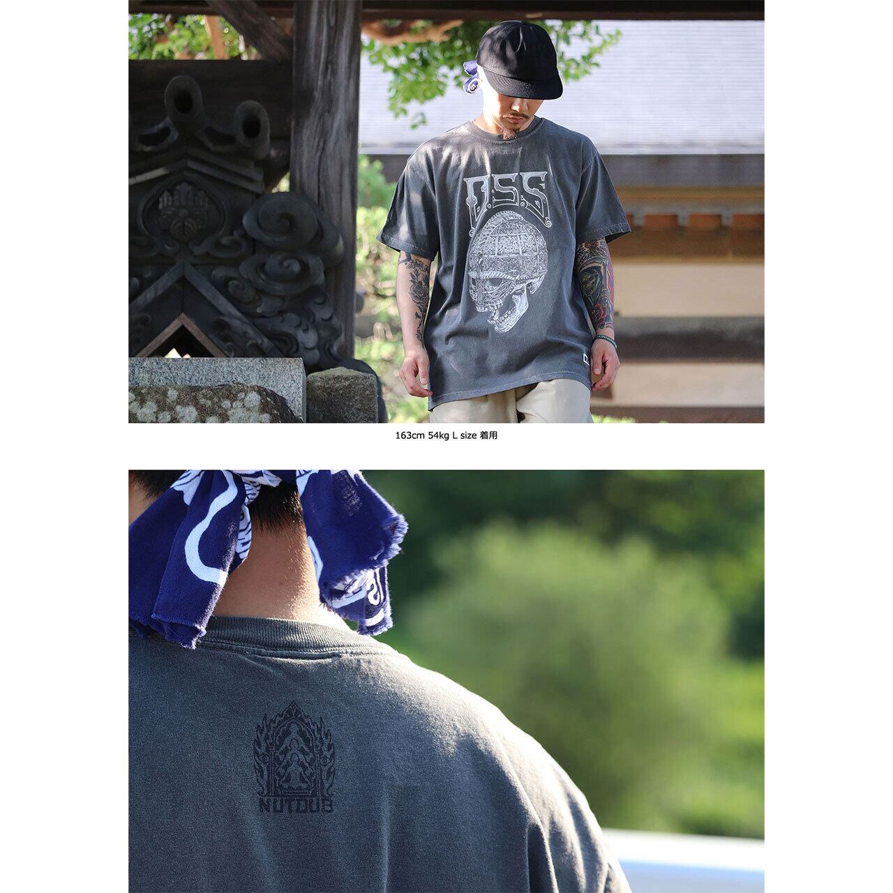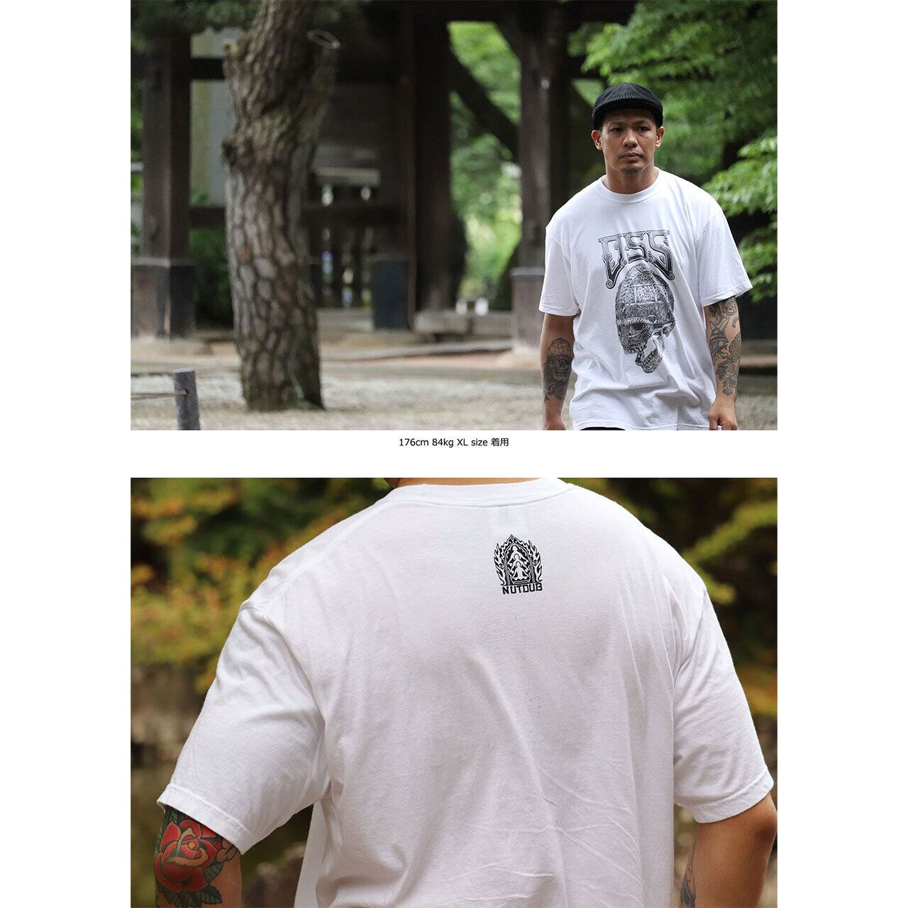 055 (LINKAGE) NUTDUB Skull T-SHIRT ストリート ブランド タトゥー Tシャツ アメカジ スカル tシャツ t シャツ ドクロ デザイン イラスト 白 黒 メンズ 半袖 綿 柔らか M L XL ピグメント 古着風 ヴィンテージ ブラック ホワイト | OSS
