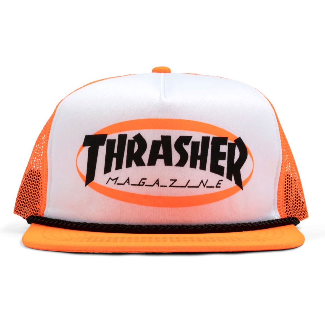 【正規輸入品】 THRASHER (スラッシャー) Ellipse Trucker スケートボード スケボー キャップ スラッシャー メッシュキャップ 帽子 フラットバイザー 平つば フラット トラッカー ストリート メンズ ブランド メッシュ トラッカーキャップ