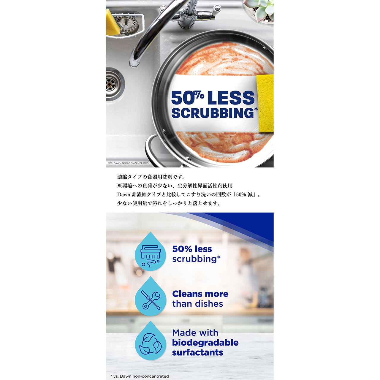 Dawn 非濃縮タイプと比較してこすり洗いの回数が「50% 減」。