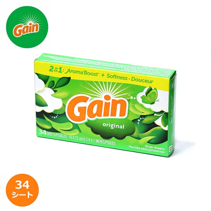 9/26(金) 再入荷 / Gain (ゲイン) Original Fabric Softener Sheets 34シート 柔軟剤シート 乾燥機用 柔軟剤 乾燥機 シート 海外 乾燥機用柔軟剤シート 芳香剤 香り ドライヤーシート クローゼット 香りシート gain アメリカ P&G
