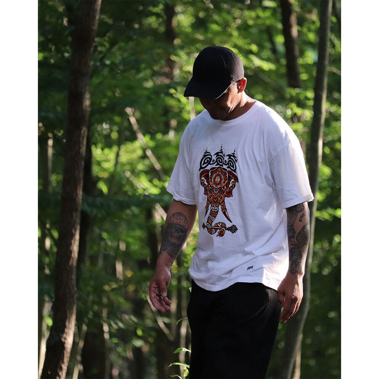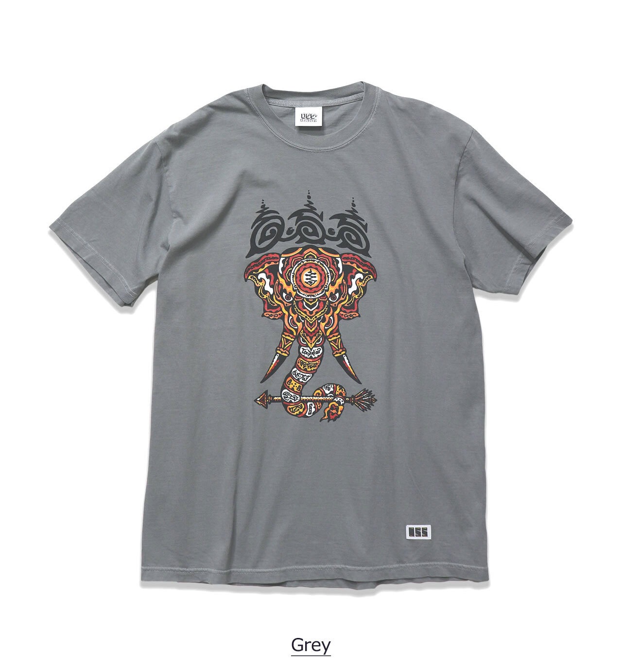 タイ・バンコクを拠点に活動するタトゥーアーティスト / イラストレーター NUTDUB (Nut Praditsilp) によるエレファントのグラフィックが落とし込まれたTシャツです。