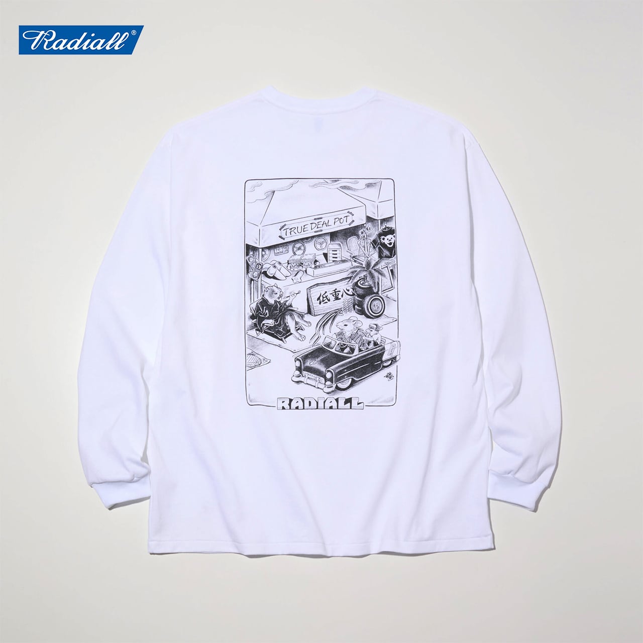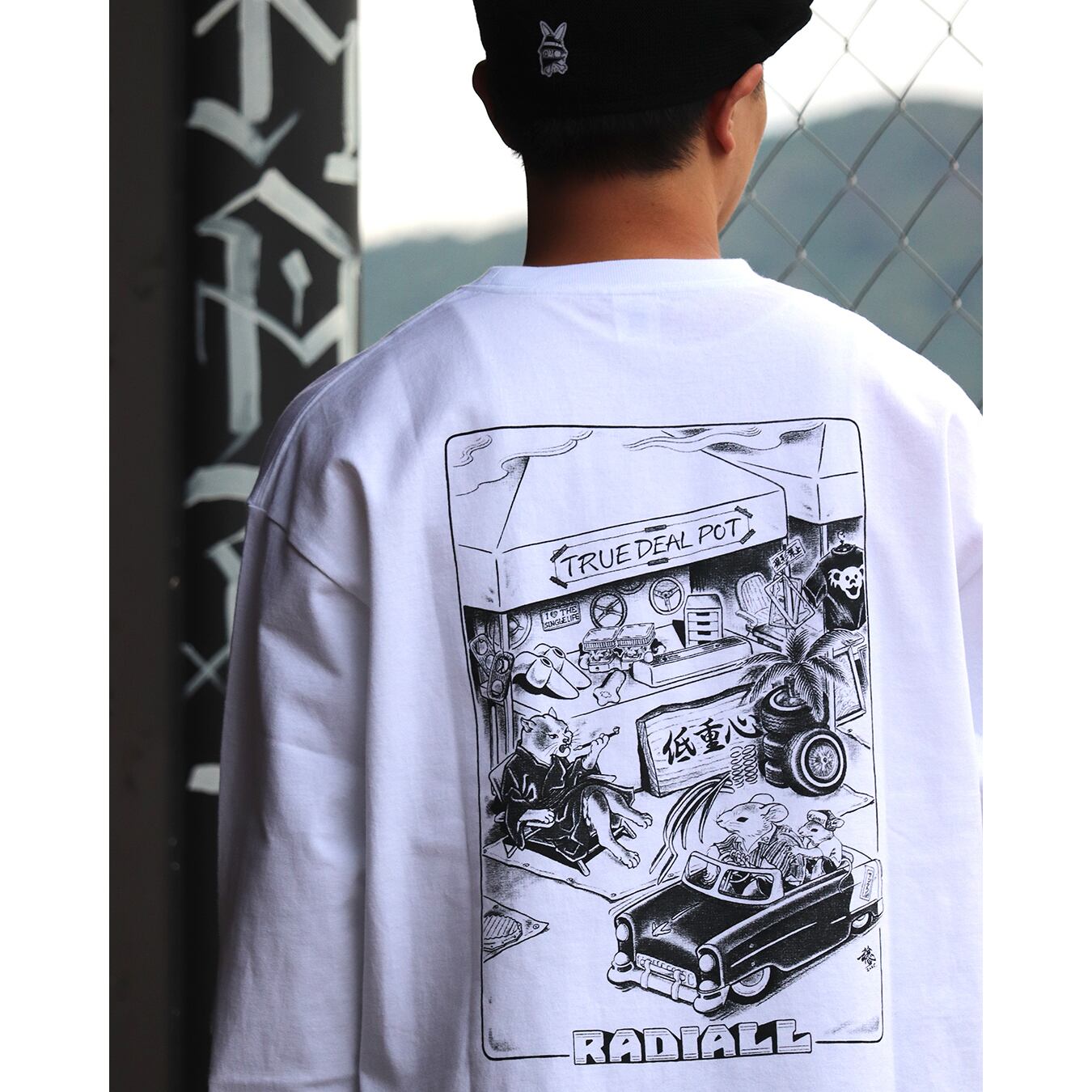 RADIALL (ラディアル) Choju Giga CREW NECK T-SHIRT L/S ラディアル t シャツ ロンT ストリート ロンt メンズ ブランド コットン100 ロンTシャツ アメカジ おしゃれ 白 日本製 綿100 バックプリント プリント 長袖 tシャツ 長袖tシャツ 野坂稔和