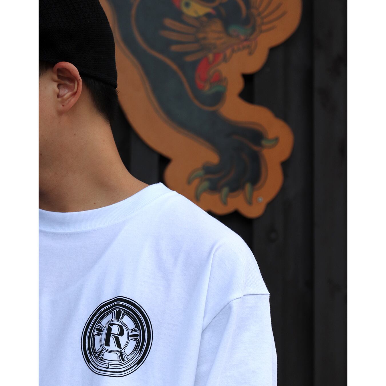 フロントにホイールロゴ、バックに鳥獣人物戯画 (スワップミートの図柄) がシルクスクリーンプリントで配されています。
