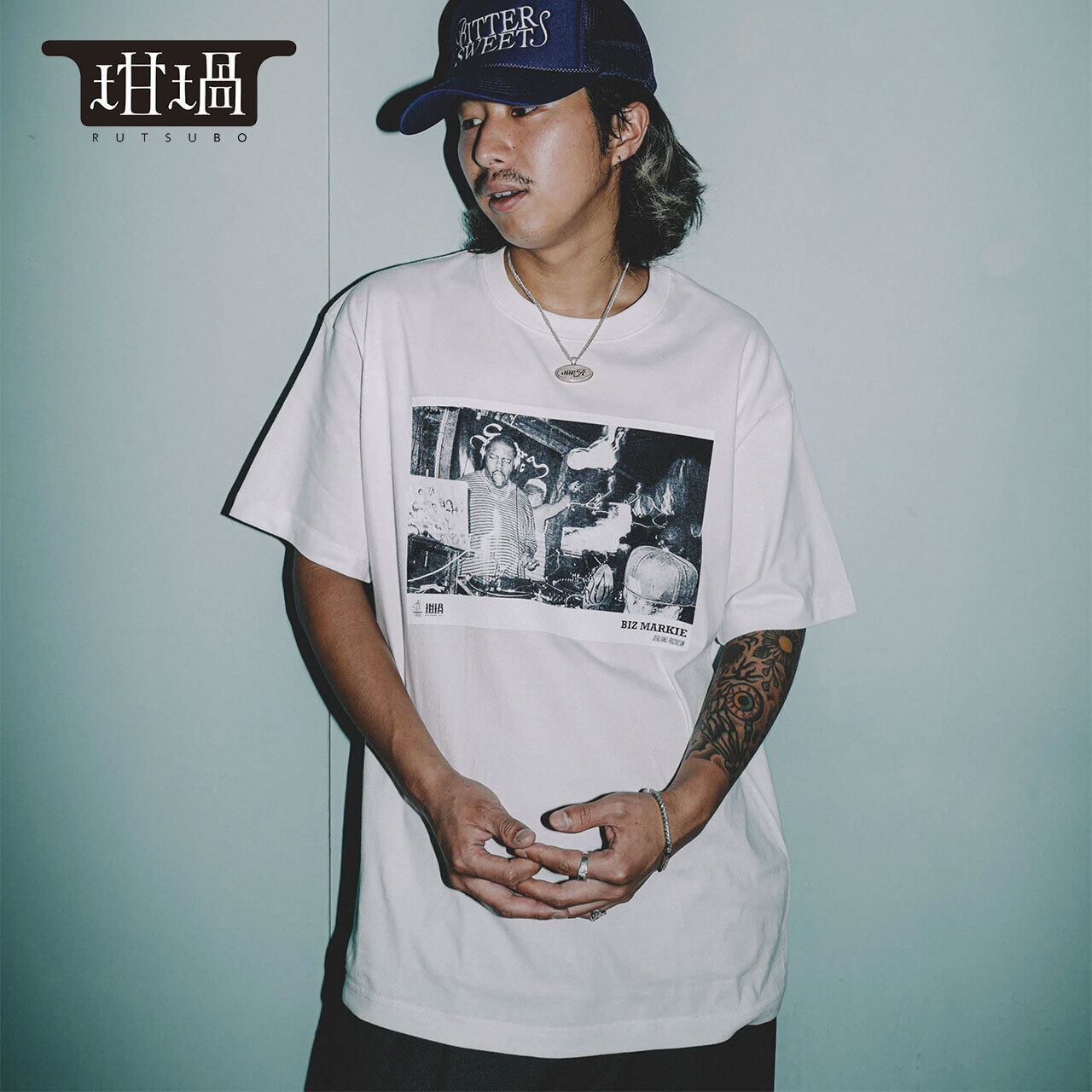 坩堝 (RUTSUBO) SUTRA NYC S/S T-SHIRTS (RUTSUBO × GOTHAM STORE) ストリート Tシャツ フォト Biz Markie tシャツ メンズ 半袖 綿100 ブランド 6.2オンス るつぼ | OSS