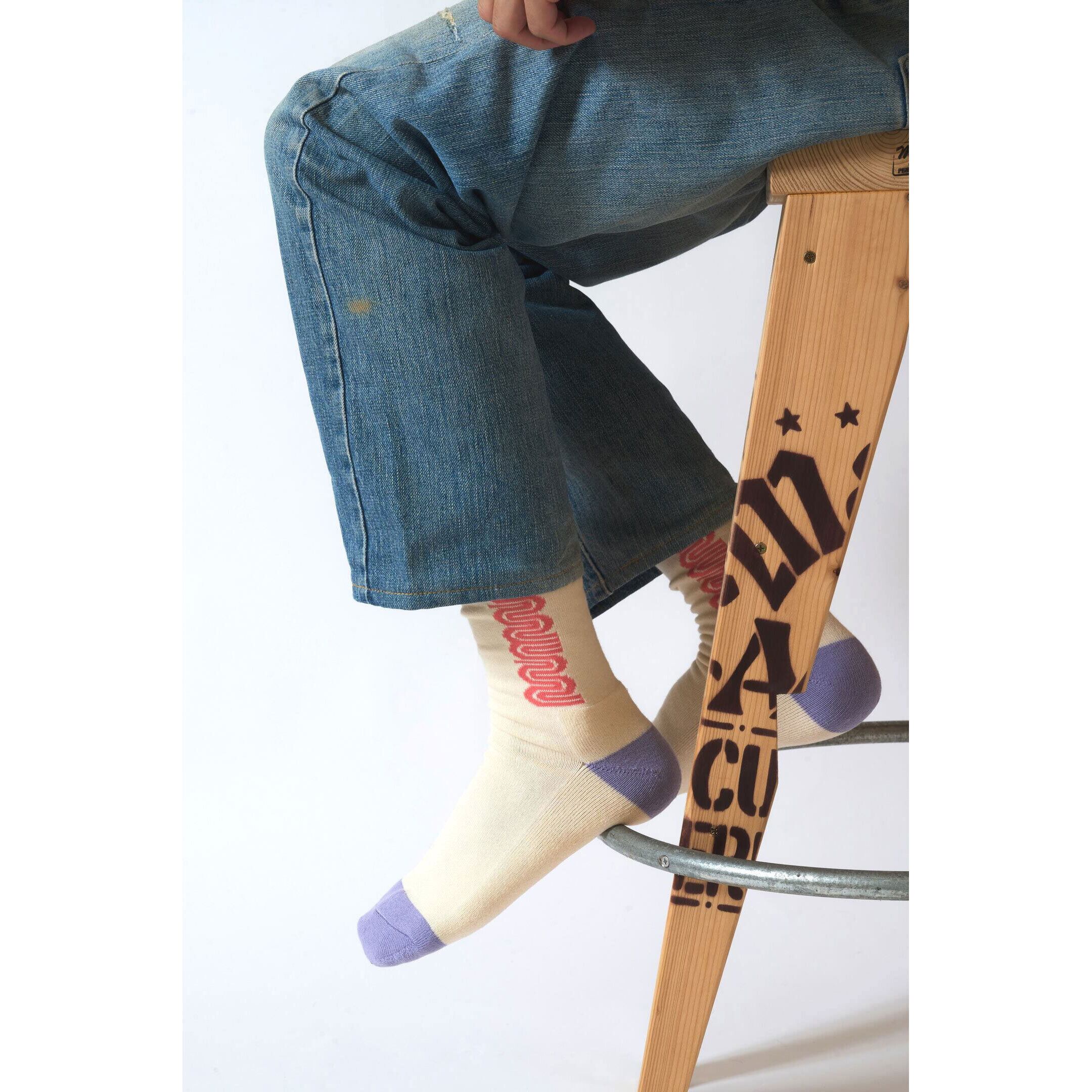 こちらは SSC の新たなアイコンのひとつ、 "ワームロゴ" を使用したオリジナルソックス。