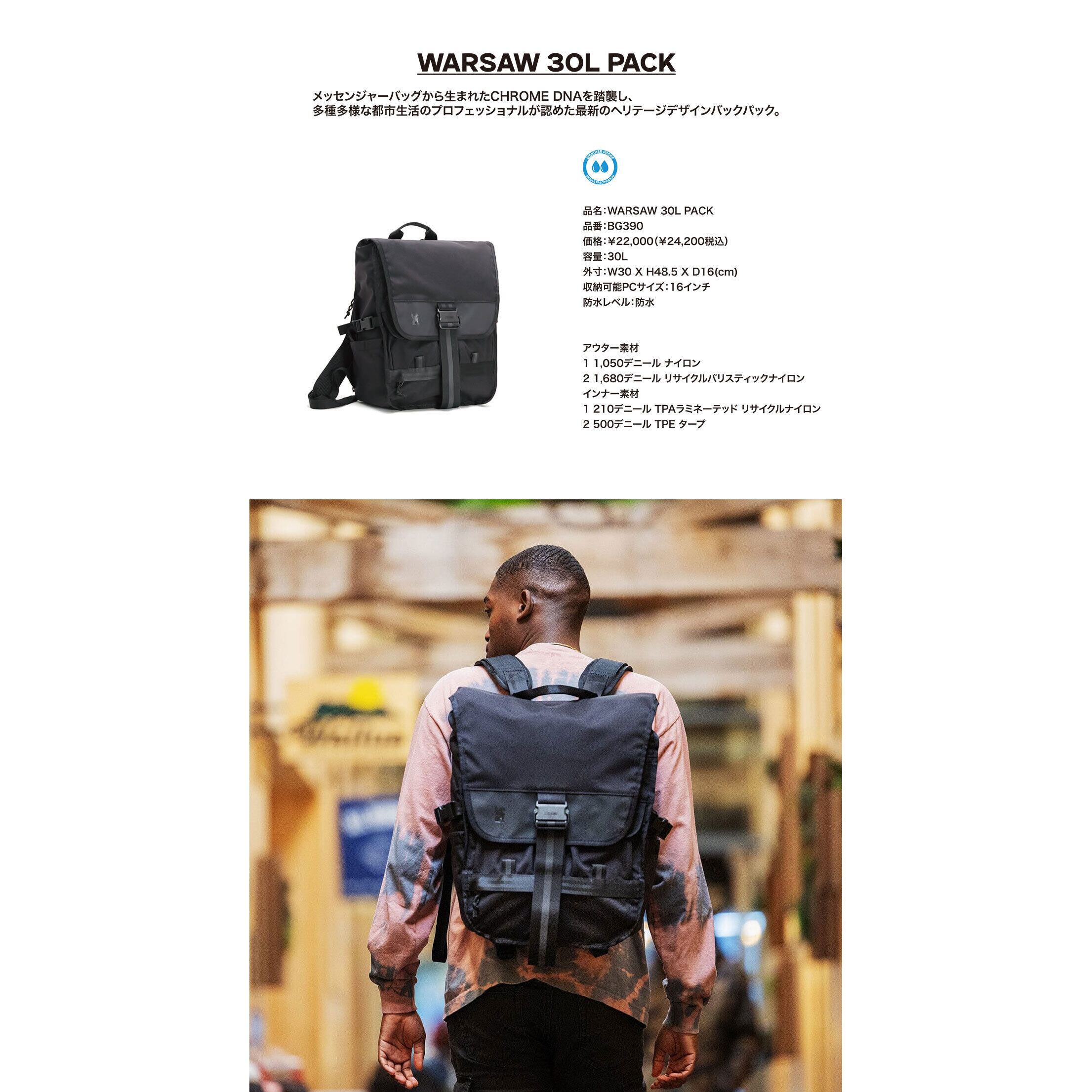 CHROME (クローム) WARSAW 30L PACK クローム バッグ chrome ストリート バッグパック 30L ブランド リュック メンズ 防水 大容量 ビジネス 旅行 軽量 バックパックブランド バックパックメンズ ストリートバッグ ワルシャワ | OSS