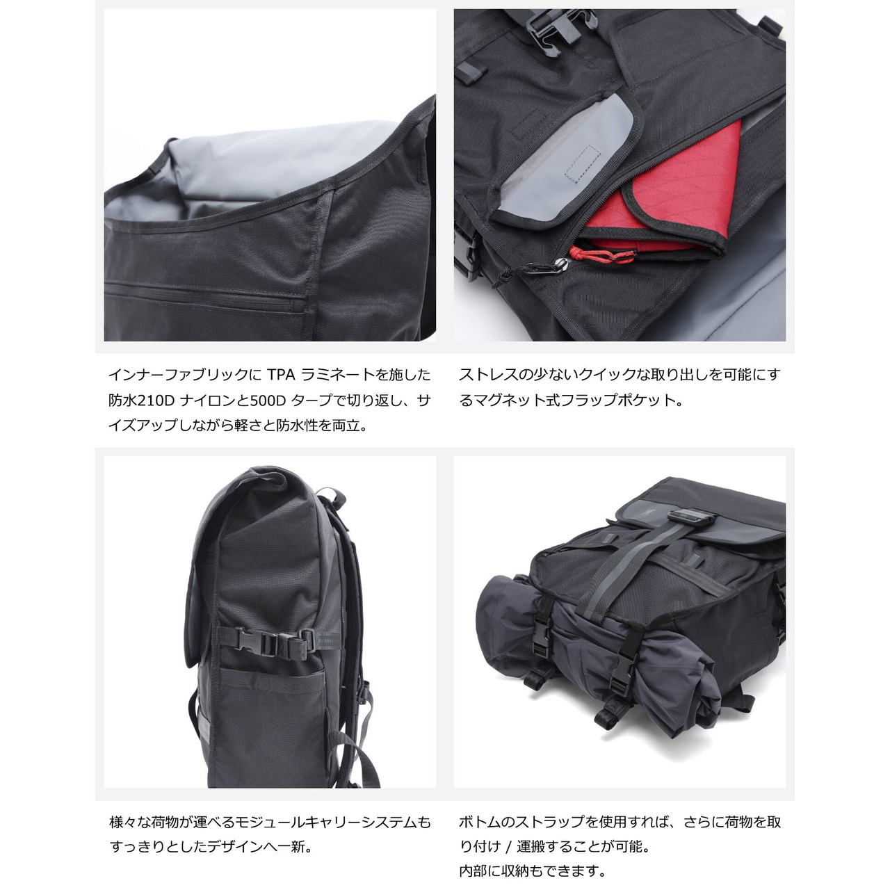 革新的なクイックリリースバックル、サブストラップ、デュアルウォール構造、ファイブバーウェビングなどを搭載し、世界中のメッセンジャーに愛用されるプロダクトへ成長。