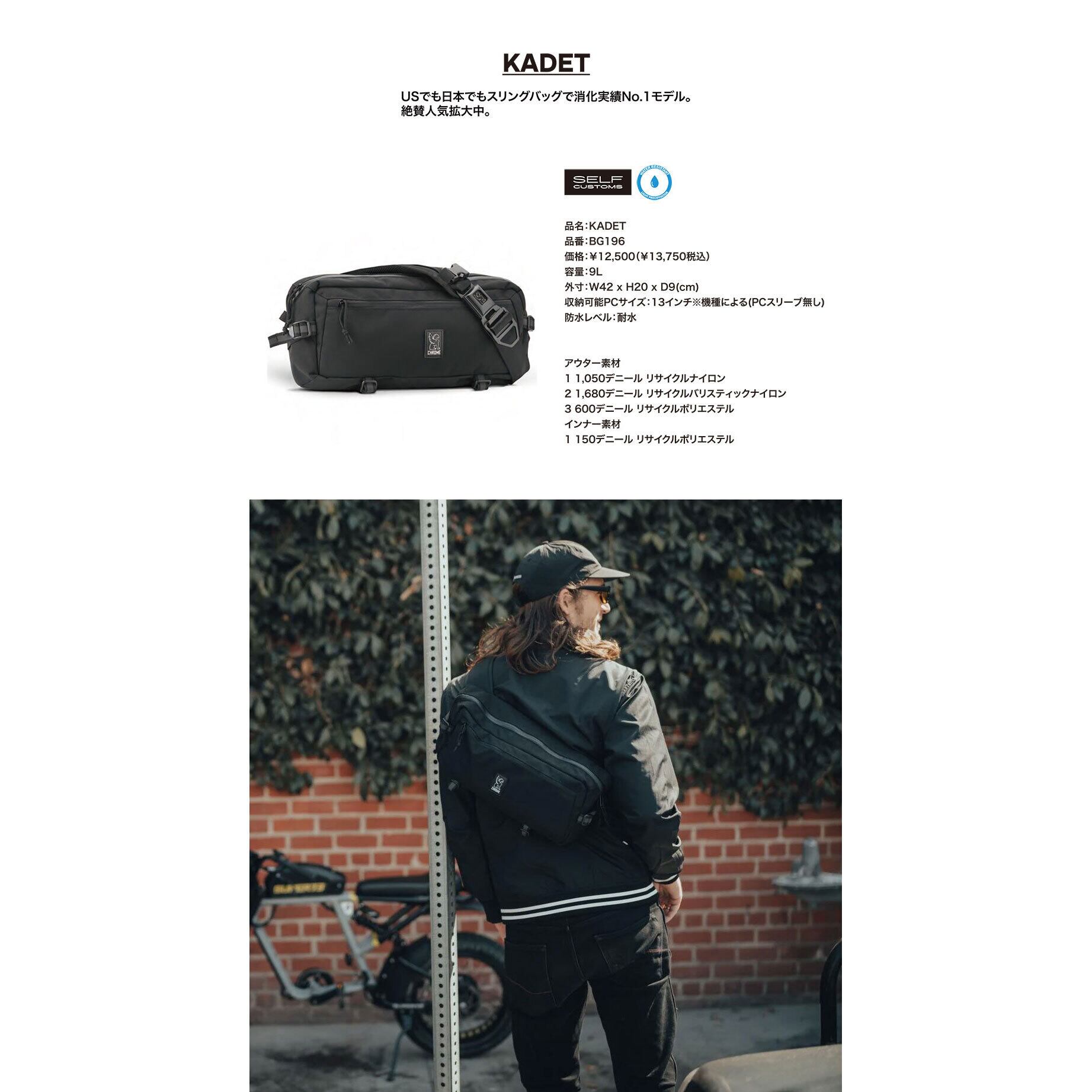 KADET (カデット) はバッグの原点に立ち戻り、都市生活で必要とされる物だけを携帯する為に開発されたシートベルトバックル付きのスリングバッグ。