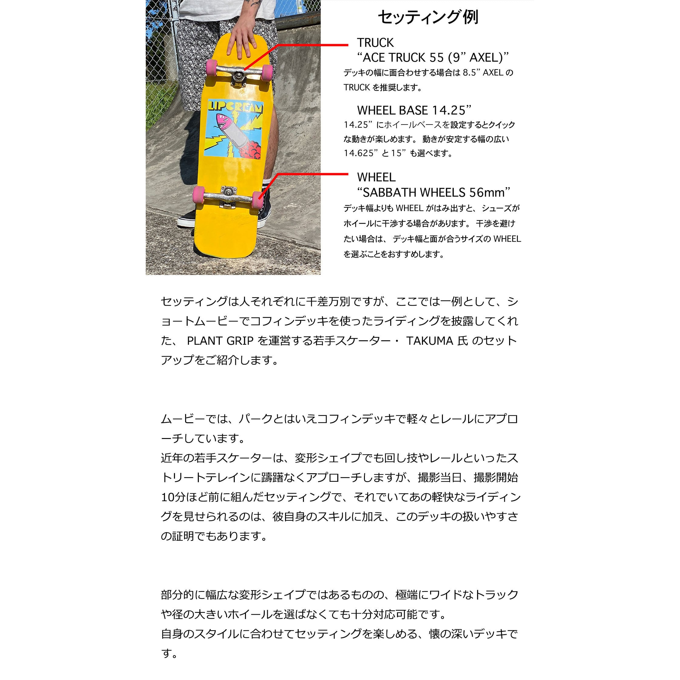 2023年に同氏が手掛けた ACCÜSED AD のコフィンデッキをベースに、 LIP CREAM のボーカリスト JHAJHA 氏の要望により、よりシャープな形状にリシェイプされました。