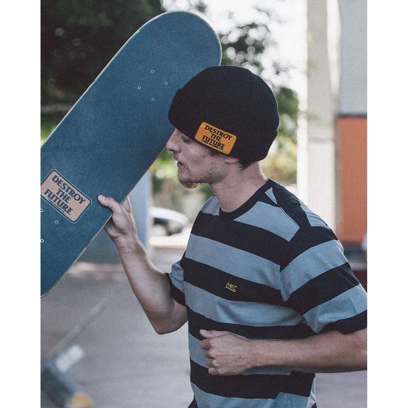 フロントにワッペンでアートワークを配されたカフ (折り返し) ビーニーです。