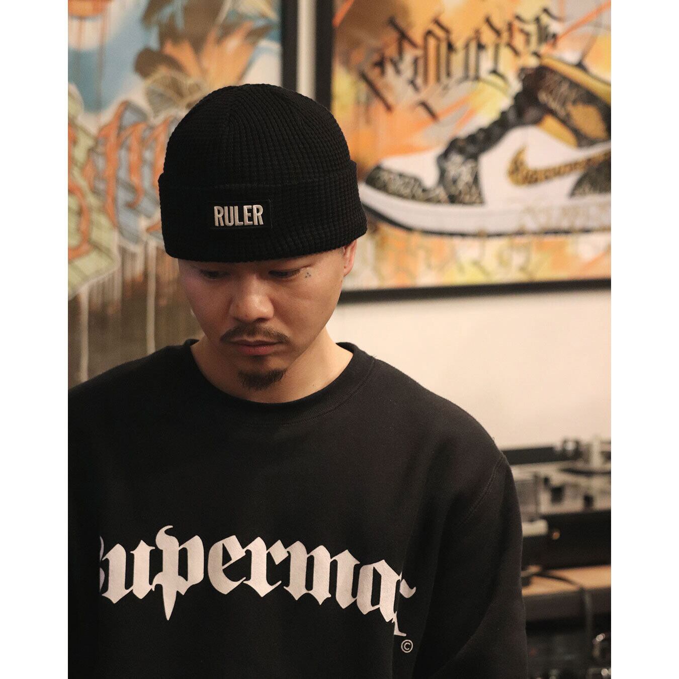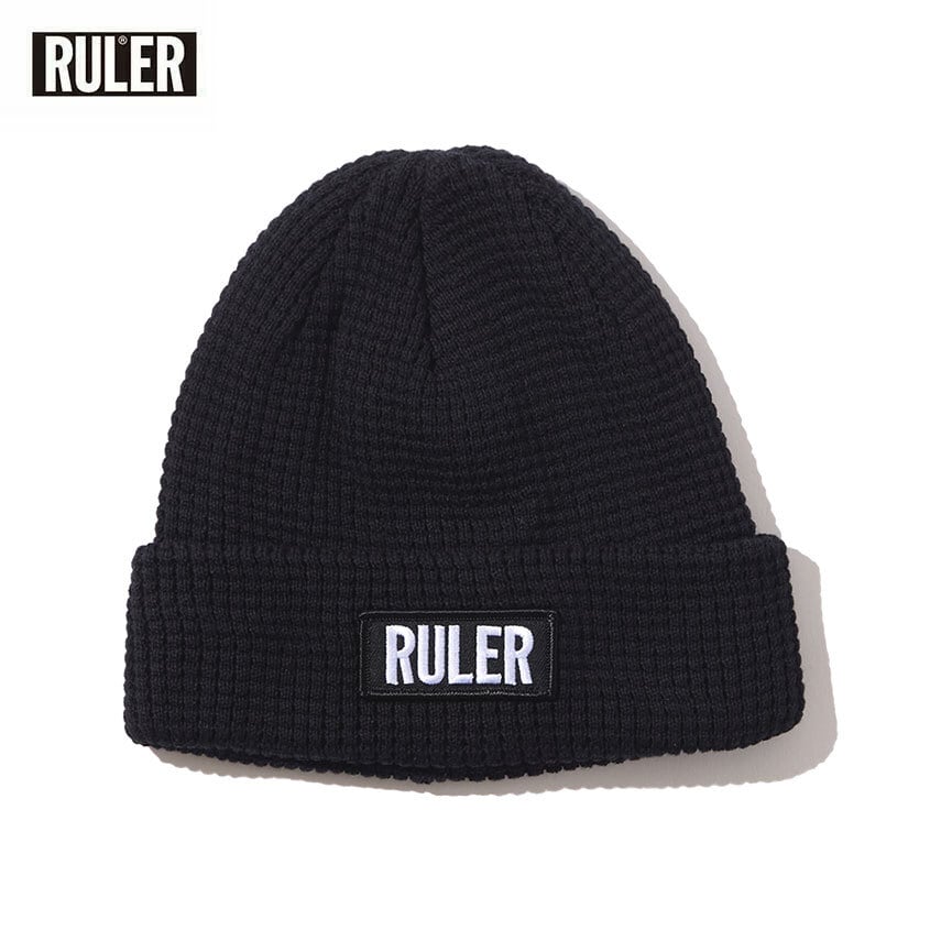 RULER (ルーラー) ICON WAFFLE BEANIE ルーラー ニット帽 コットン ビーニー ストリート ブランド ニットキャップ コットンビーニー ビーニー帽 メンズ 浅め 黒 ブラック 帽子 ニット ニット帽子 綿ニット帽 綿ニット帽子 コットンニットキャップ | OSS