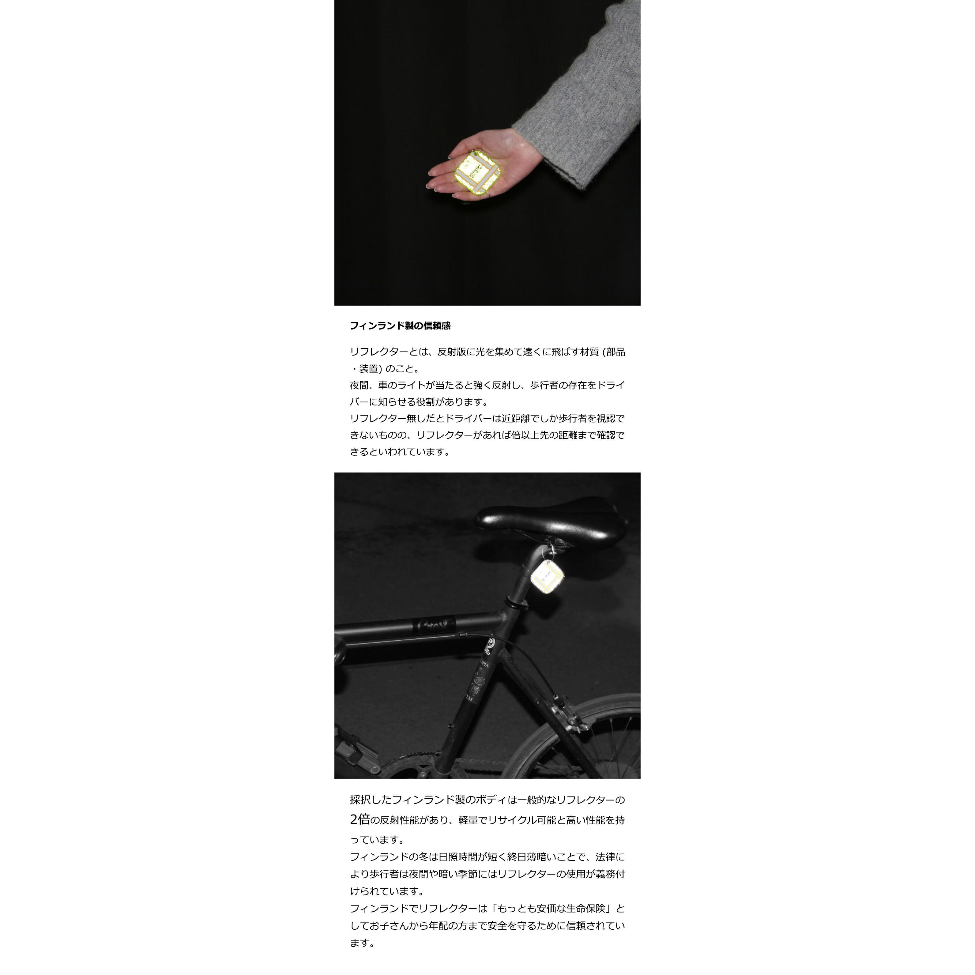 採択したフィンランド製のボディは一般的なリフレクターの2倍の反射性能があり、軽量でリサイクル可能と高い性能を持っています。