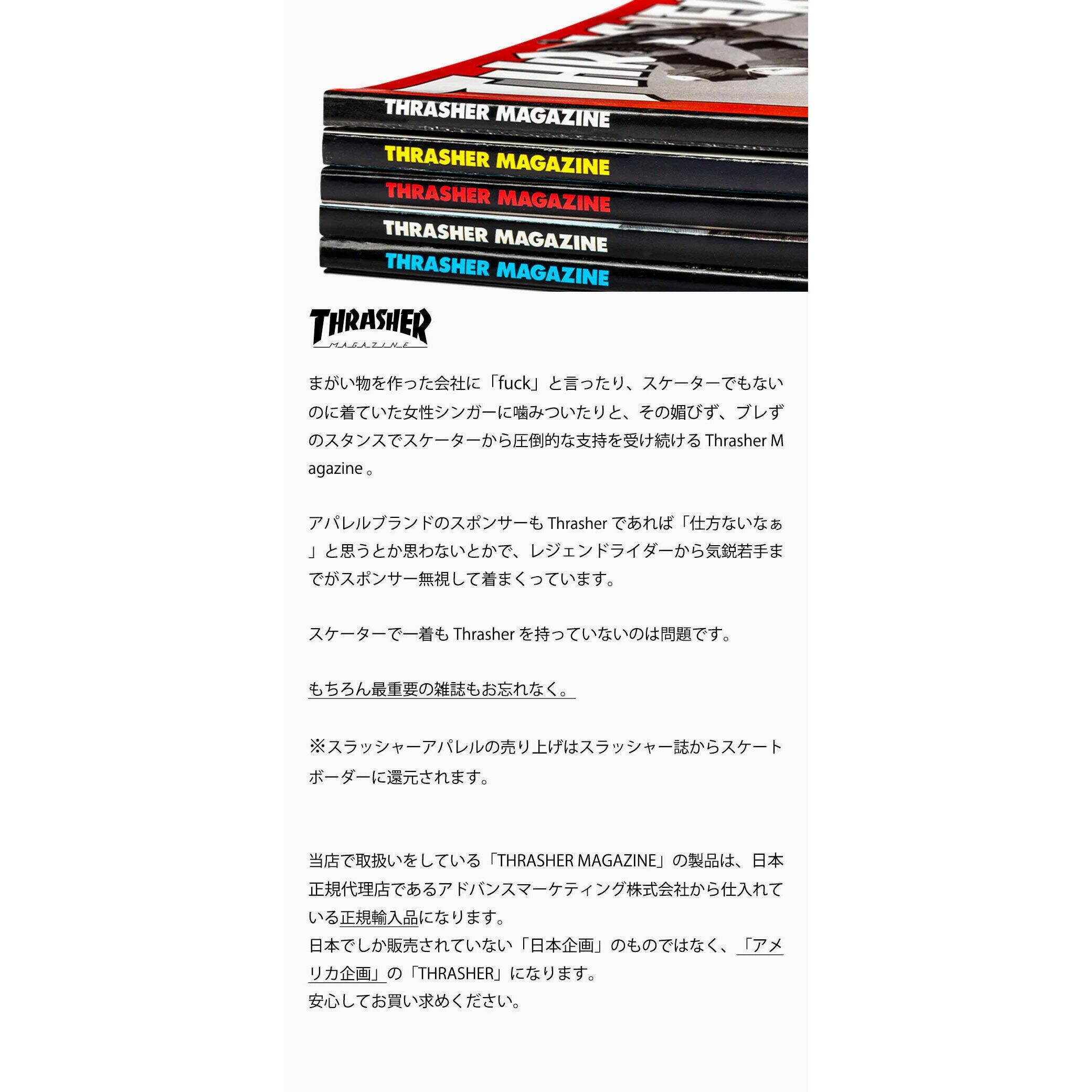 ※当店で取り扱う「Thrasher Magazine」の製品は、輸入代理店である「アドバンスマーケティング株式会社」から仕入れている正規輸入品になります。