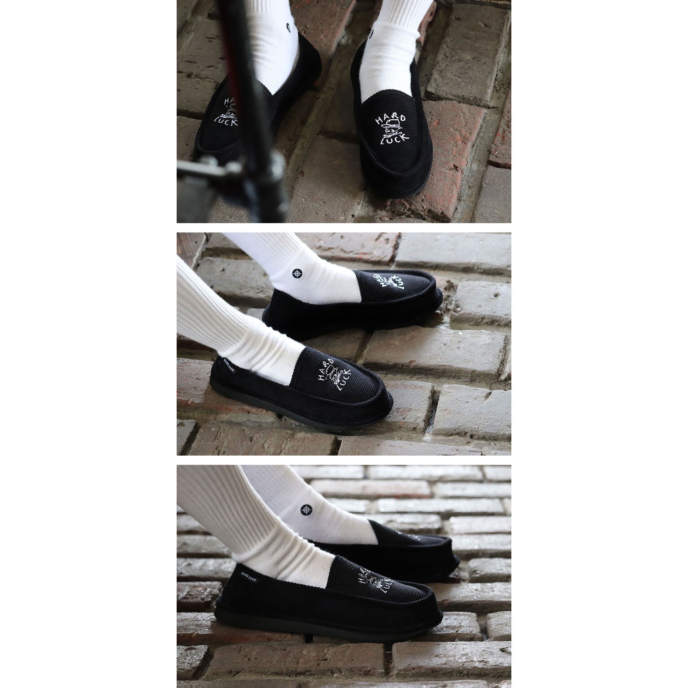 【正規輸入品】 HARD LUCK (ハードラック) HARD TIMES HOUSE SLIPPERS ハウスシューズ スリッパ メンズ 外履き サンダル ブランド ルームシューズ かかとを踏める靴 つっかけ カリフォルニア チカーノ メキシカン 西海岸 26cm 27cm 28cm コーデュロイ 黒 | OSS