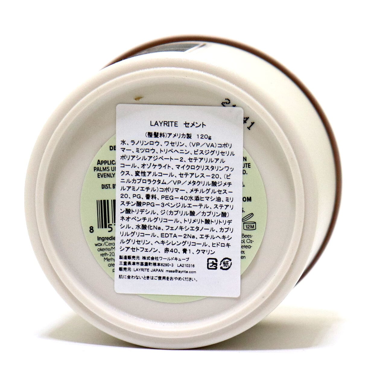 10/18(土) 再入荷 / 【正規輸入品】 LAYRITE (レイライト) CEMENT CLAY 120g アメリカ 製 ポマード レイライト レイライトポマード 水性ポマード ヘアー スタイリング ワックス メンズ マット スーパーハード 整髪料 男性用 ハードワックス セメント クレイ