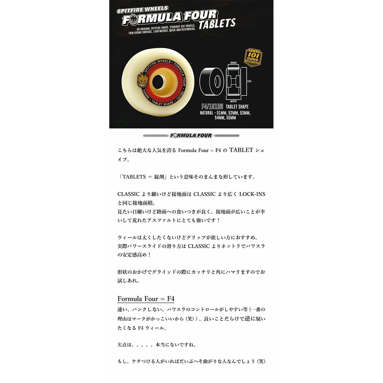 【SPITFIRE (スピットファイヤー) FORMULA FOUR TABLETS NATURAL 101DURO】