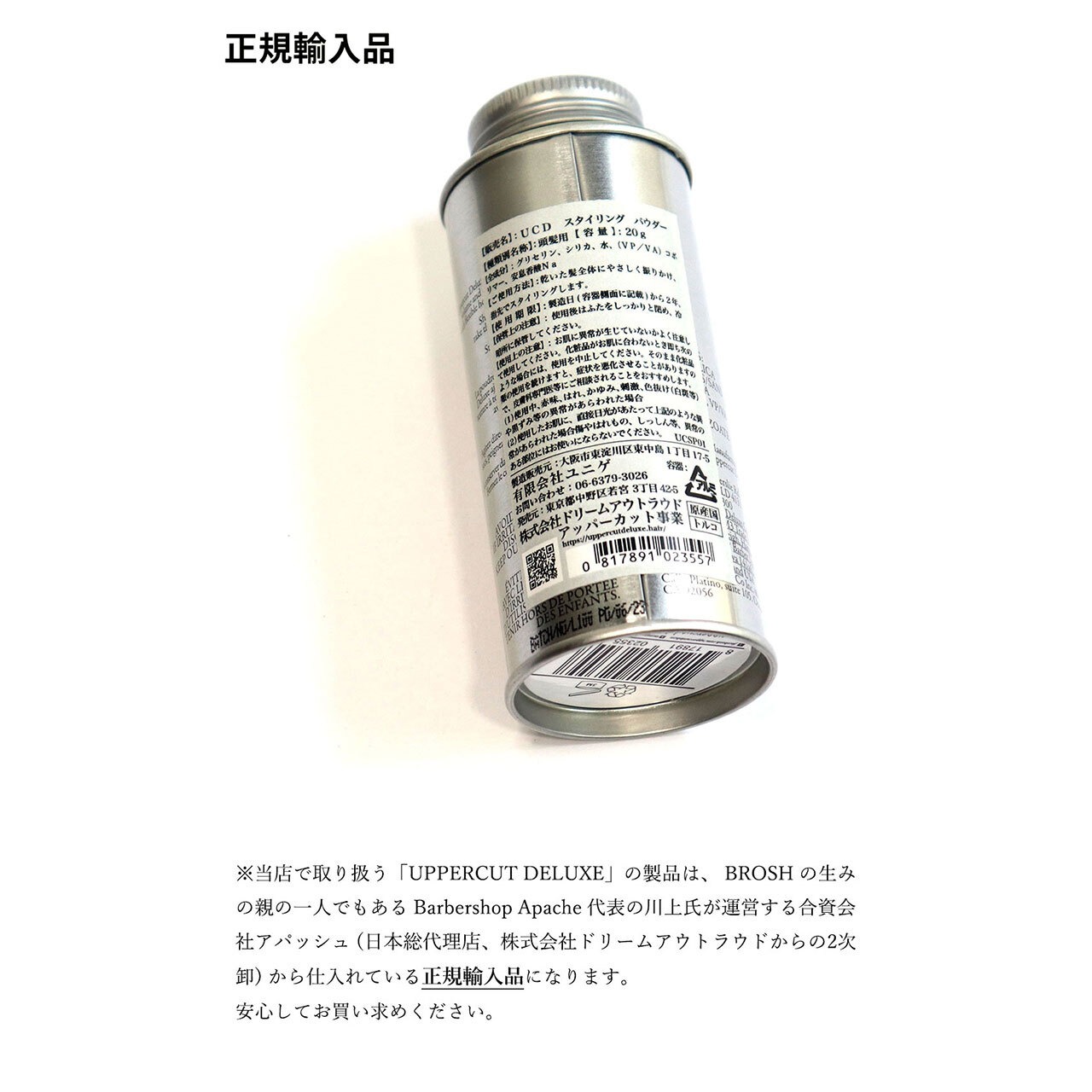 ※当店で取り扱う「UPPERCUT DELUXE」の製品は、 BROSH の生みの親の一人でもある Barbershop Apache 代表の川上氏が運営する合資会社アパッシュ (日本総代理店、株式会社ドリームアウトラウドからの2次卸) から仕入れている正規輸入品になります。