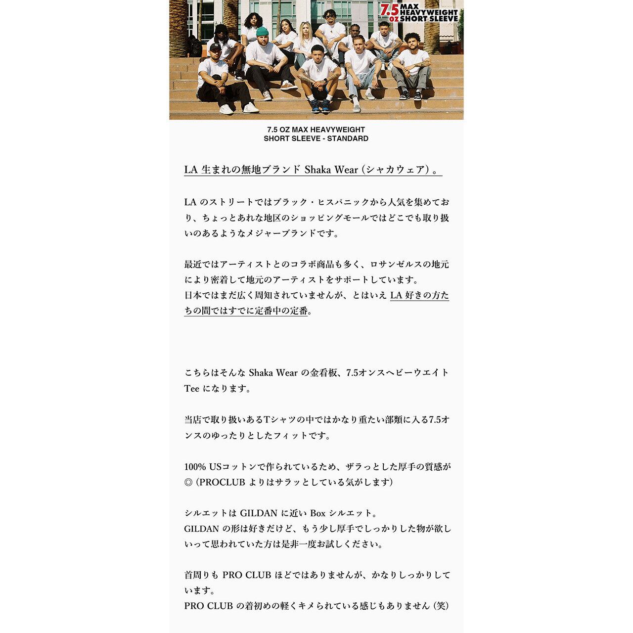 【XXL 販売ページ】 5/17(金) 在庫補充 / Shaka Wear (シャカウェア) 7.5 OZ MAX HEAVYWEIGHT SHORT SLEEVE XXL シャカウェア ヘビーウェイト Tシャツ メンズ 半袖 ブランド ティーシャツ 無地Tシャツ 黒Tシャツ ヘビーウェイトTシャツ 無地 白 厚手 USAコットン 2XL