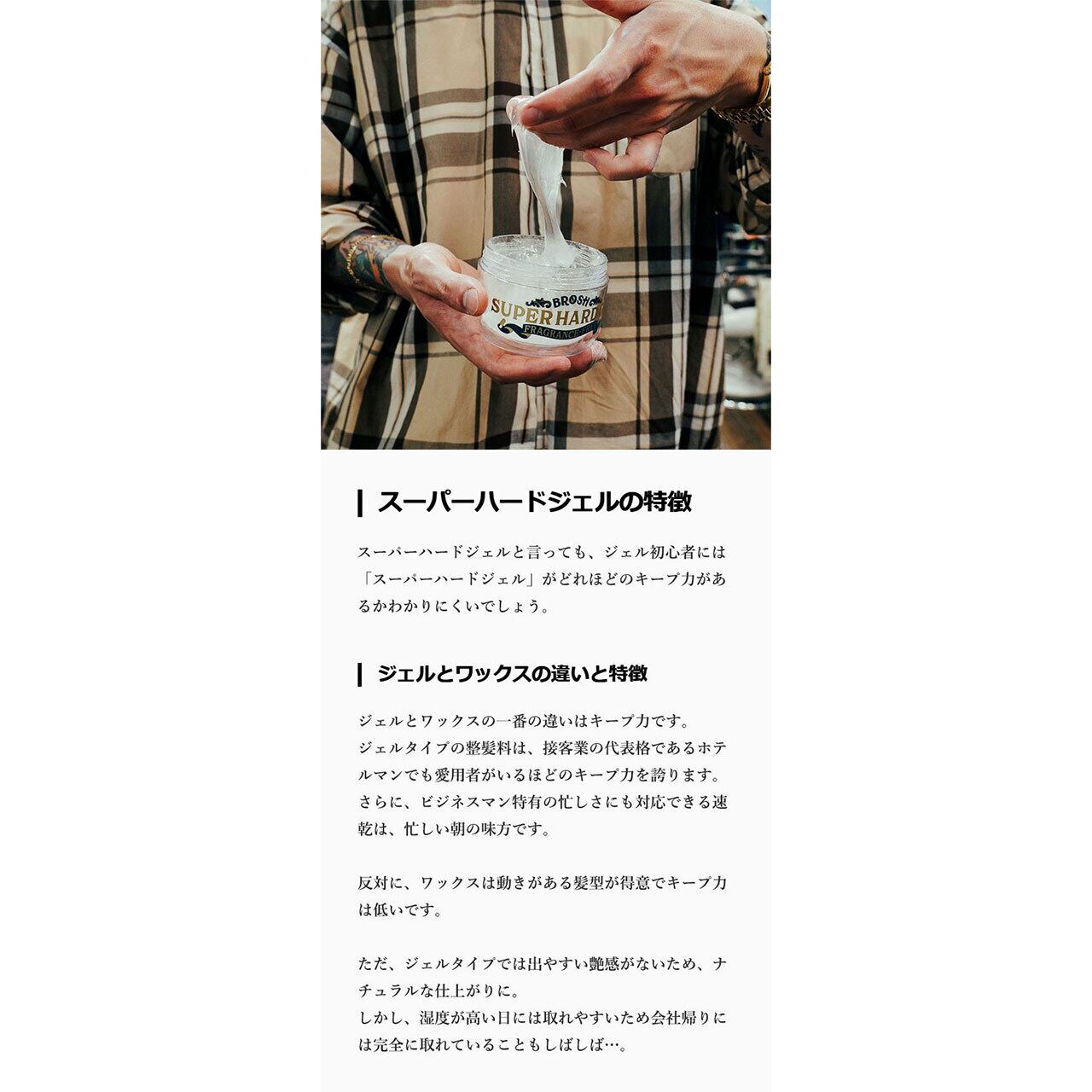 その中でも、カチッと髪を固めたいときや、ホテルマンのように髪の毛に凹凸を作りたくない時におすすめの BROSH スーパーハードジェル。
