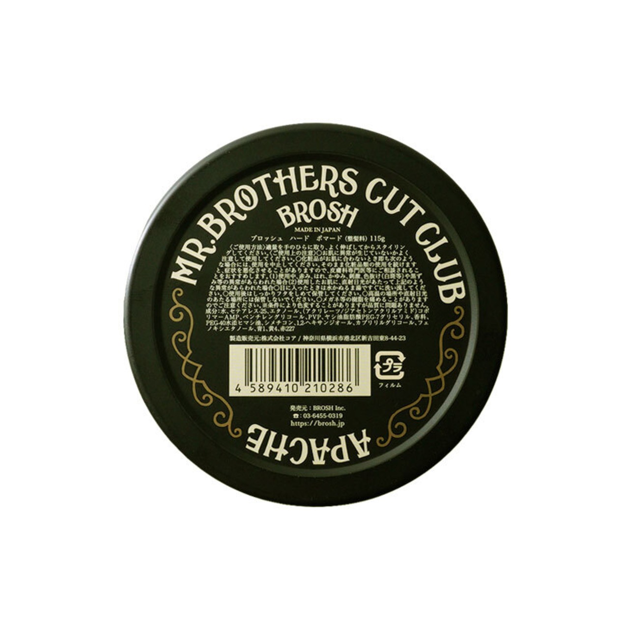 新進気鋭のバーバーショップ MR.BROTHERS CUT CLUB とレジェンドとして業界に君臨する BARBER SHOP APACHE の両店がコラボレーションし造り上げたフルジャパンメイドのポマード BROSH POMADE 。