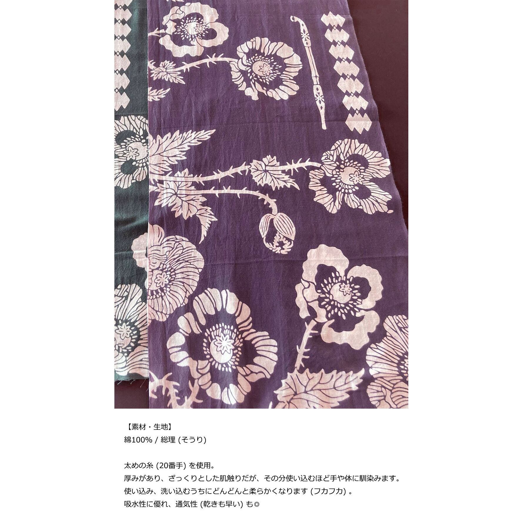 注染染めは、裏表同じ色柄に染まり、すべて職人の手作業であるため、機械で生産したものと比較して、繊細なぼかしやにじみの風合いを感じることができます。