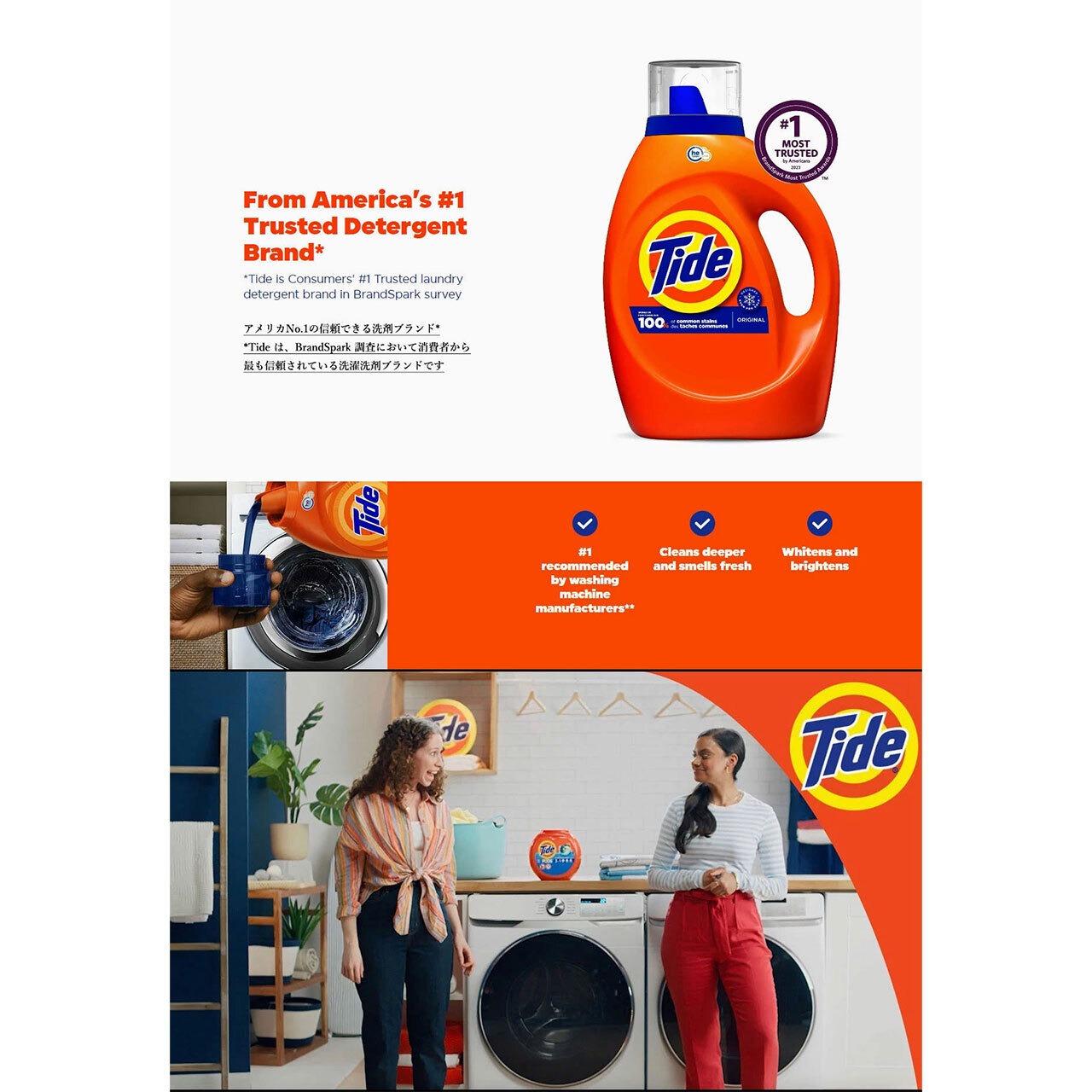 Tide は、カナダを拠点に市場調査を行っている BrandSpark (ブランドスパーク) 調査において消費者から最も信頼されている洗濯洗剤ブランドです。