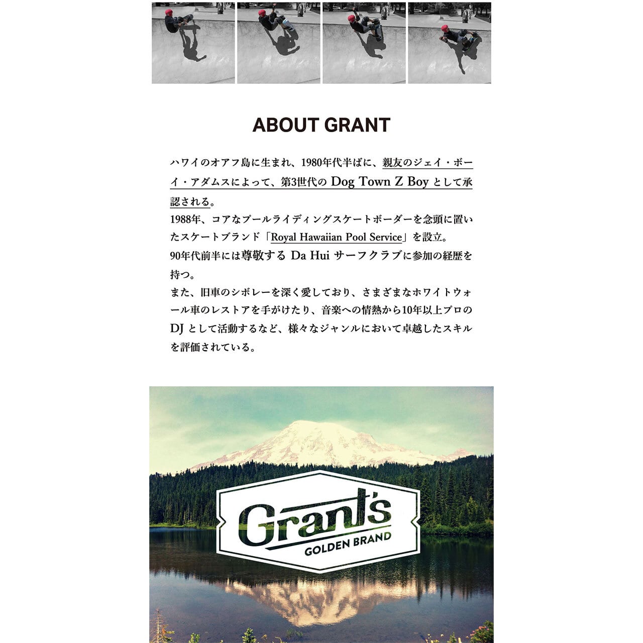 GRANT 氏を取り巻く名だたるファミリーメンバーがこよなく愛すことで、スケーター、サーファー、バイカーやアーティストなど幅広いジャンルから絶大な指示を受けています。