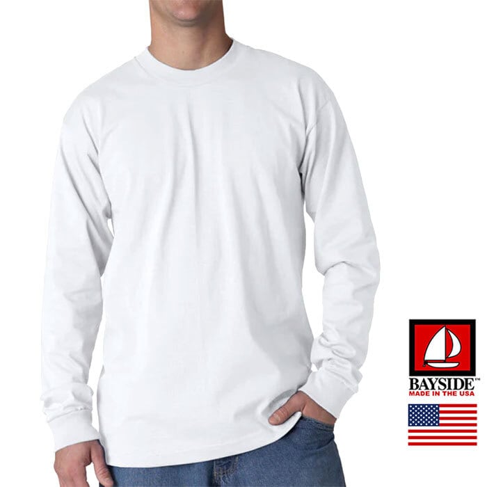 11/1(土) 在庫補充 / BAYSIDE (ベイサイド) MADE IN USA HEAVYWEIGHT 6.1 OZ. UNISEX LONG SLEEVE CREW ベイサイド 長袖Tシャツ 長袖 Tシャツ ロンT メンズ ブランド リブ 無地 厚手 ヘビーウェイト アメリカ製 コットン 綿100 白 グレー | OSS