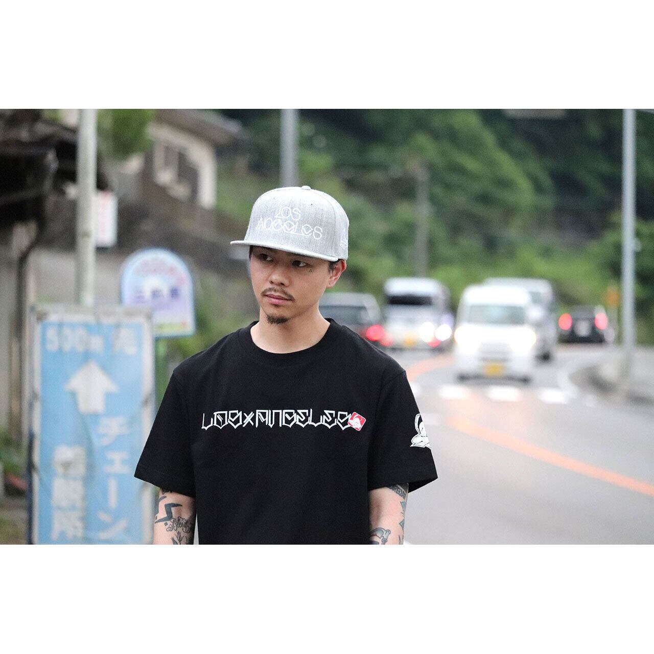 こちらはフロントにロゴ (Los Angeles handstyle) 刺繍が落とし込まれたスナップバックになります。