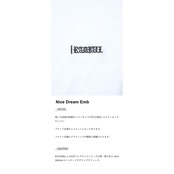 フロント左胸に KUUMBA との共作フレグランスシリーズの第一弾である NICE DREAM のパッケージデザイングラフィックが横振り刺繍 (※) で入ります。