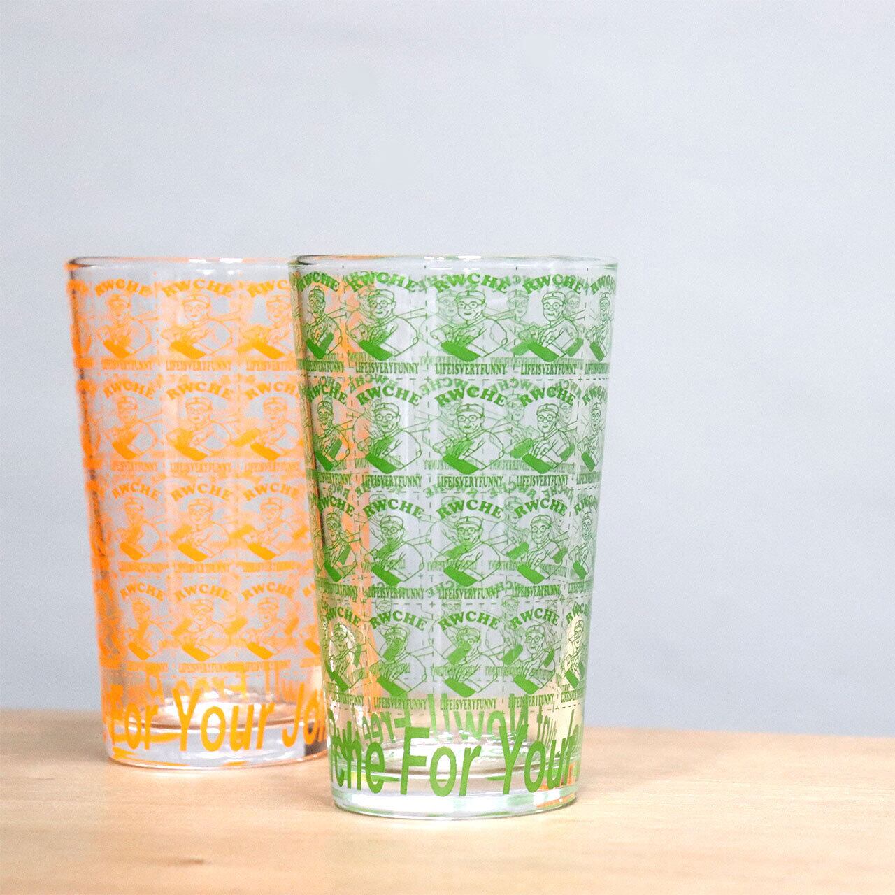 RWCHE のフライヤーデザインが全面に落とし込まれたグラスになります。