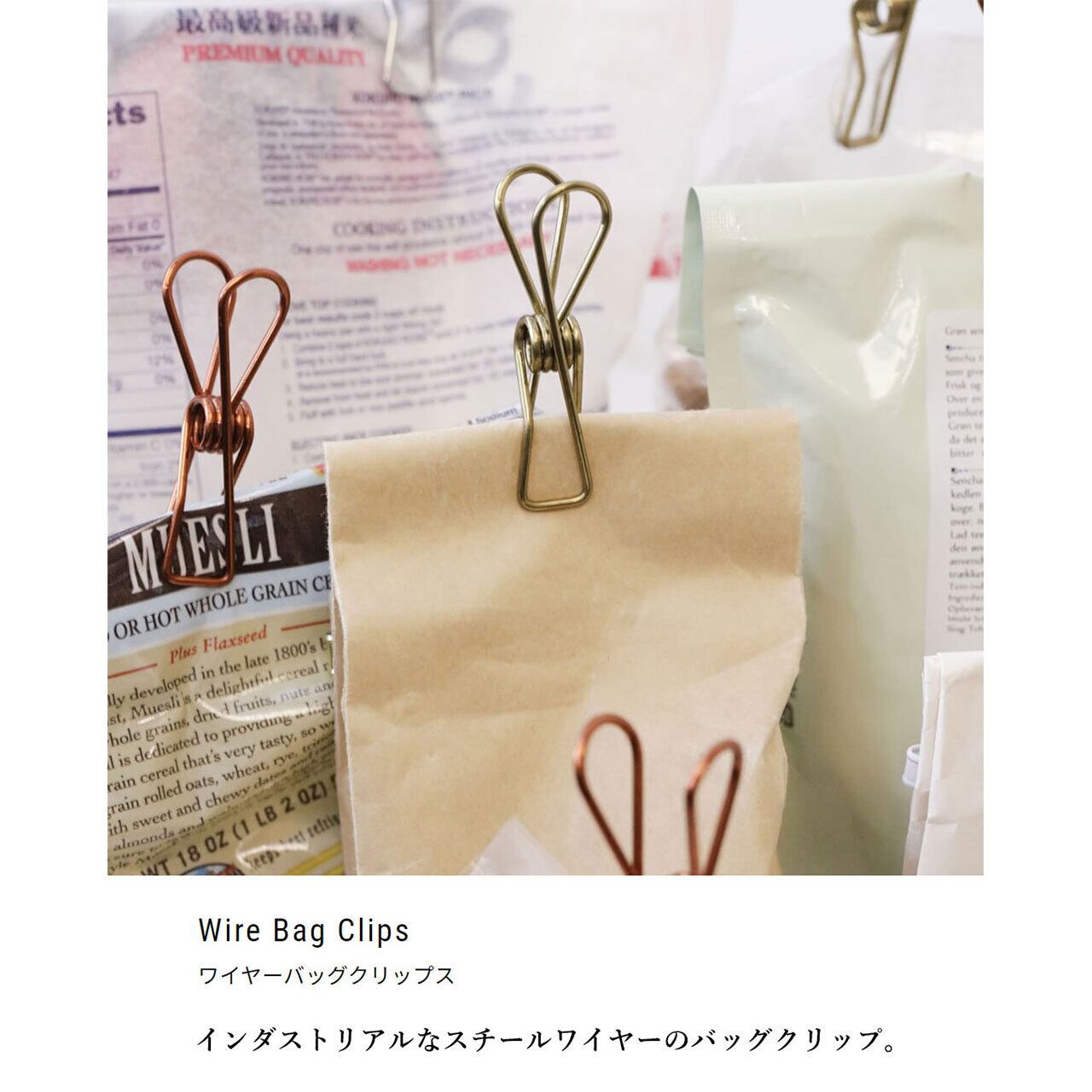 こちらはインダストリアルなスチールワイヤーのバッグクリップになります。