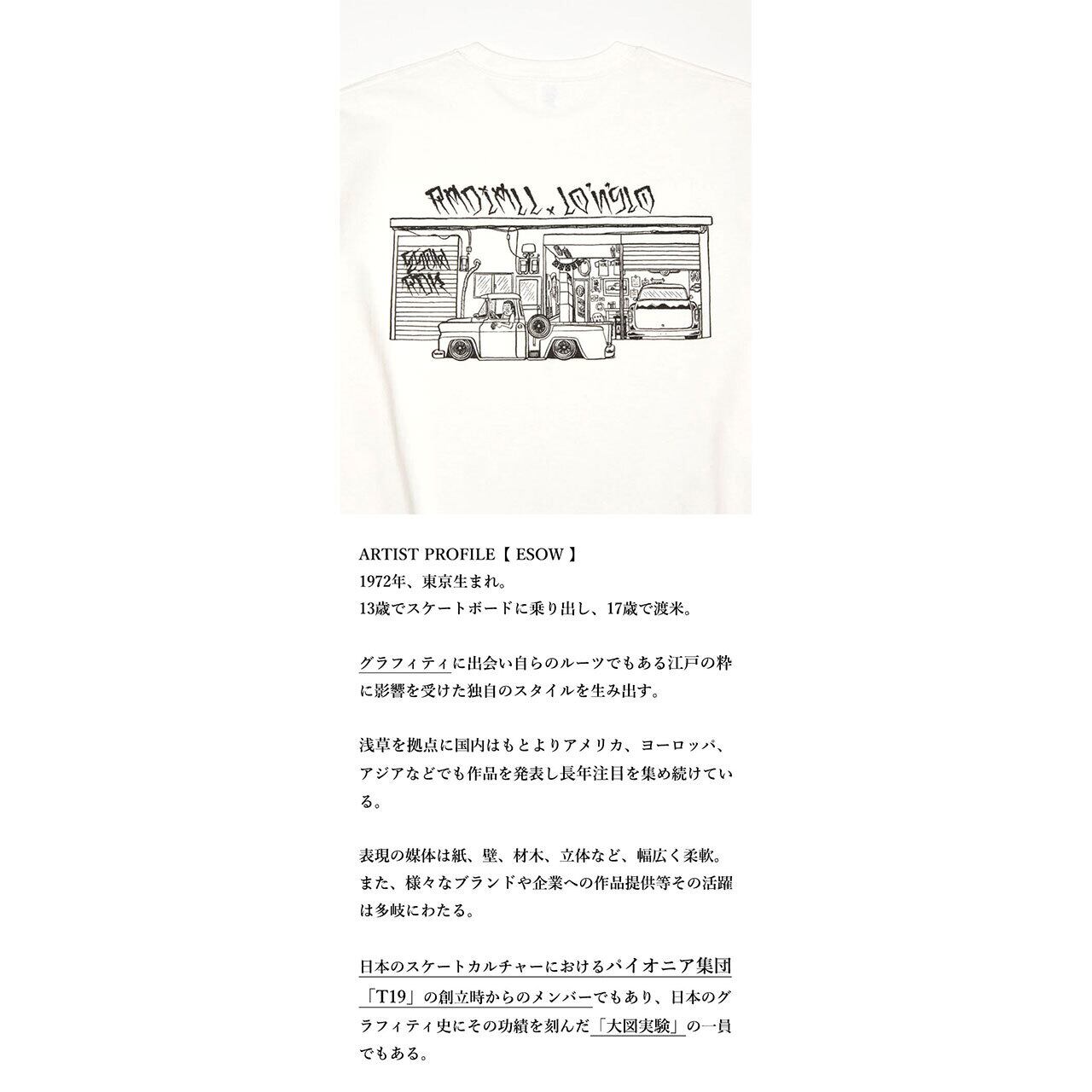 和をモチーフにしたユーモラスな作風で、ワールドワイドに活躍するアーティスト ESOW 氏描き下ろしによるグラフィックが落とし込まれたロンT (ロングスリーブTシャツ) になります。