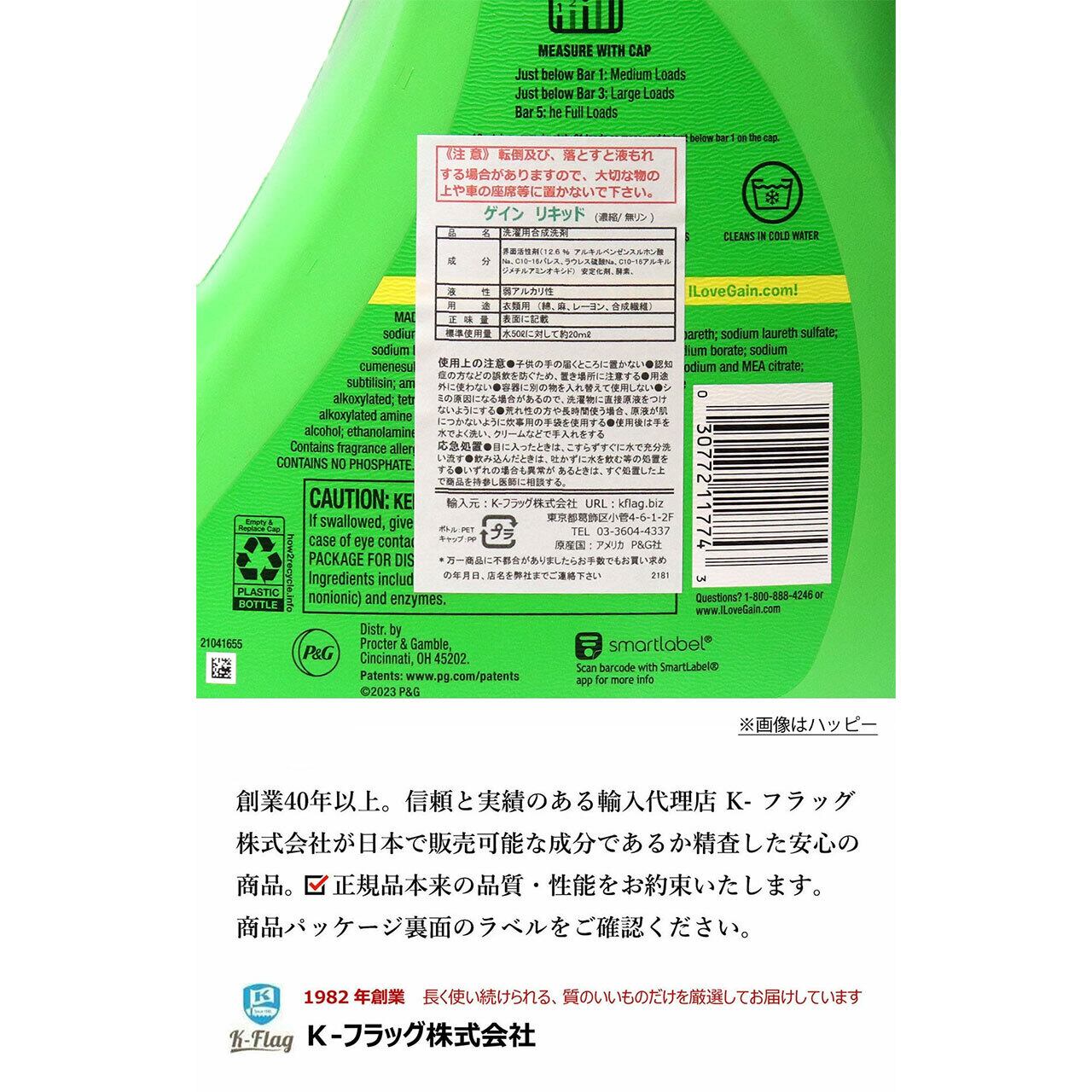 全米最大の消費財メーカー P&G が展開するブランド Gain (ゲイン) の衣類用洗濯洗剤です。