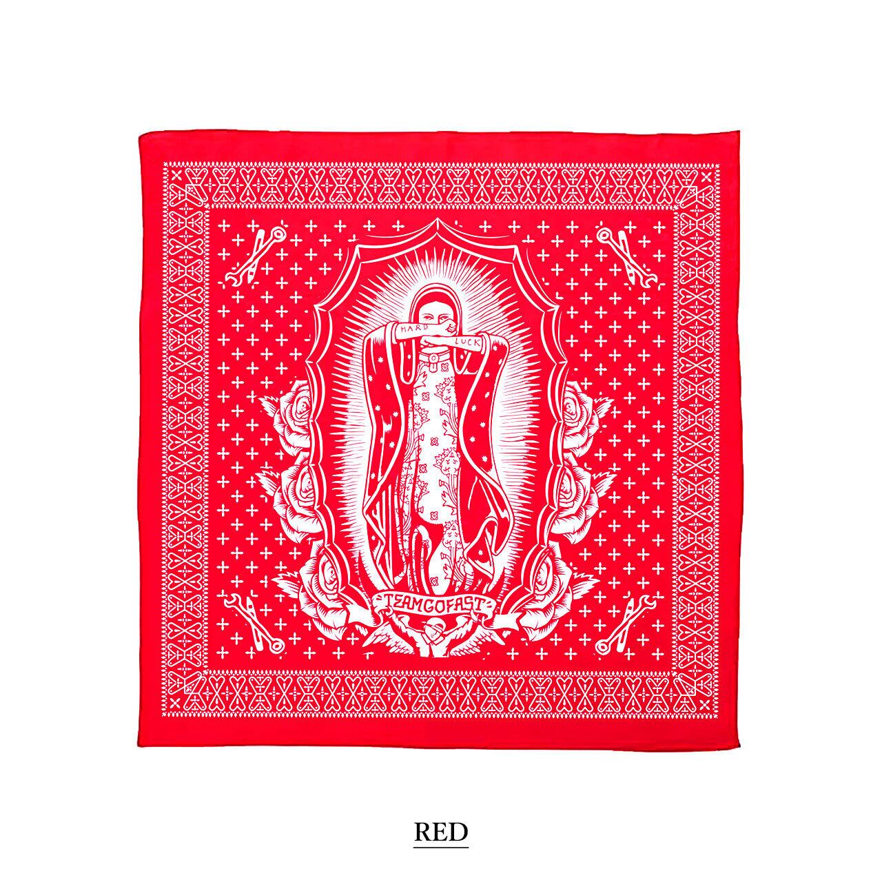 HARD LUCK (ハードラック) Lady G Roses Bandana バンダナ メンズ 赤 青い オレンジ 色 黒 おしゃれ 柄 ペイズリー柄 グアダルーペ マリア 聖母マリア ストリート ブランド スケボー アパレル ハードラック hardluck