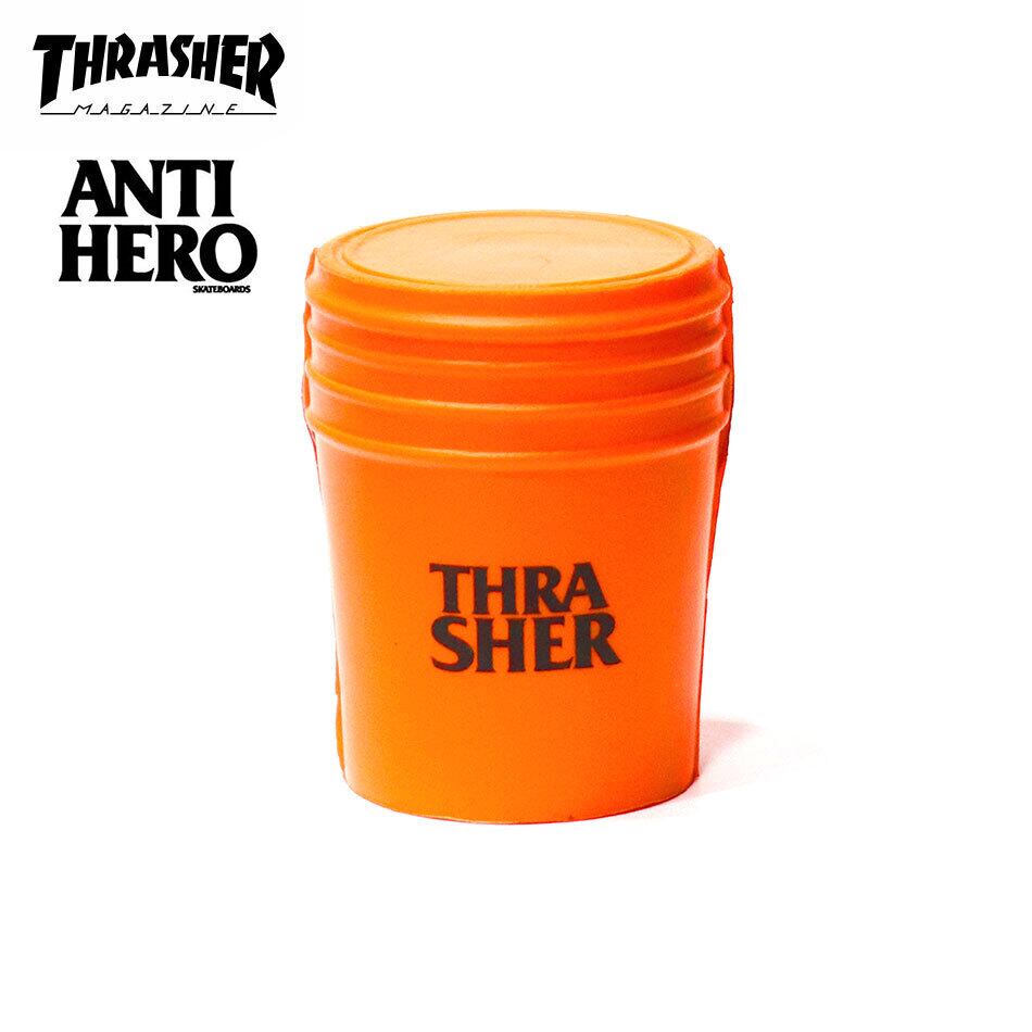 オレンジのバケツに ANTIHERO の定番ロゴ BLACKHERO の THRASHER バージョンロゴが落とし込まれたデザイン。