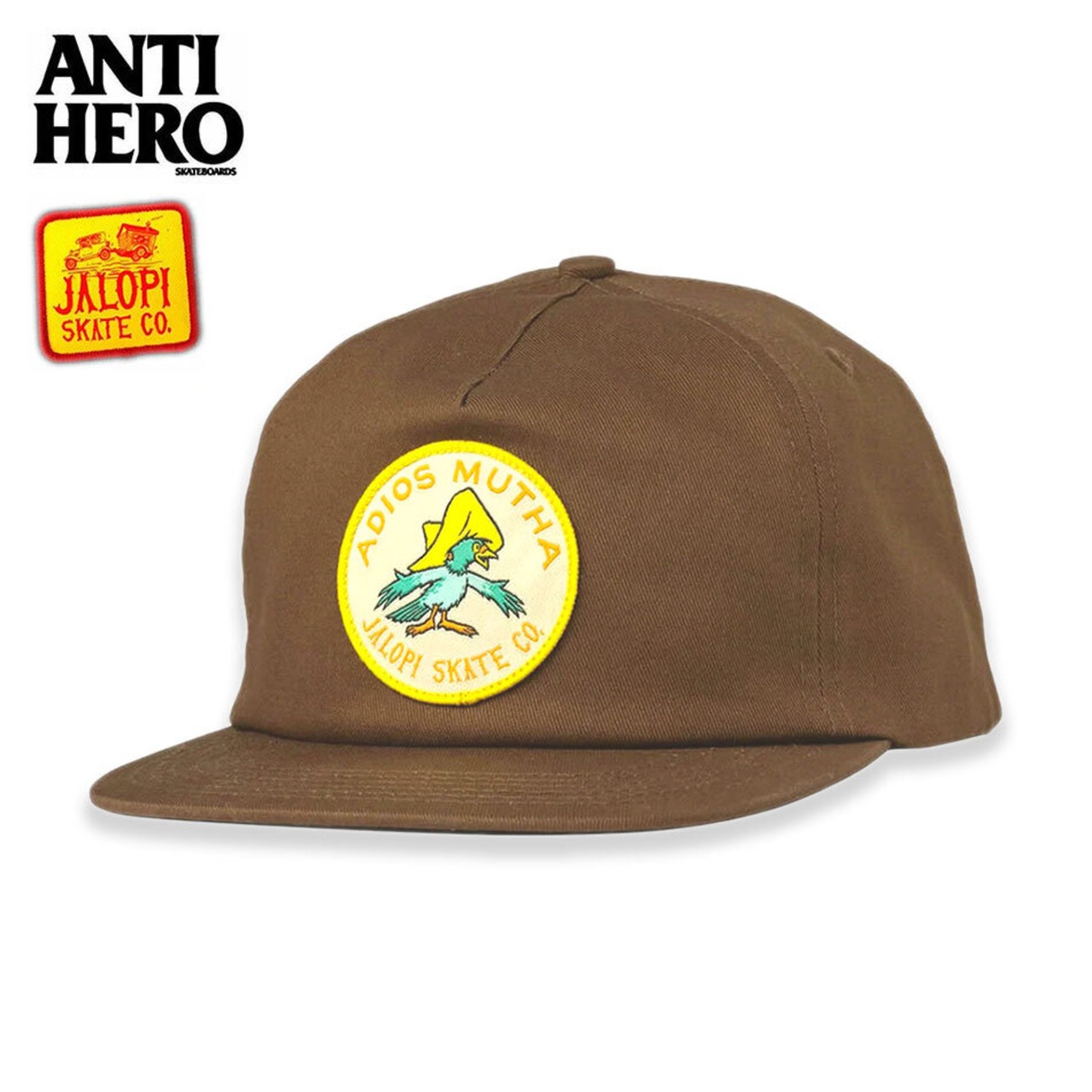 【正規輸入品】 ANTIHERO (アンタイヒーロー) JALOPI ADIOS MUTHA 5P SNAPBACK アンタイヒーロー キャップ スケボー スナップバック スケートボード スナップバックキャップ アンチヒーロー 5パネルキャップ ブラウン 帽子 メンズ ブランド