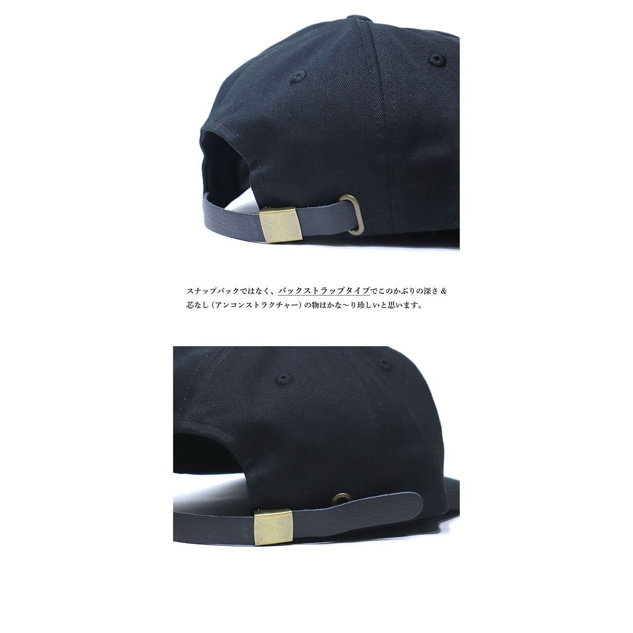 スナップバックではなく、バックストラップタイプでこのかぶりの深さ & 芯なし (アンコンストラクチャー) の物はかな~り珍しいと思います。