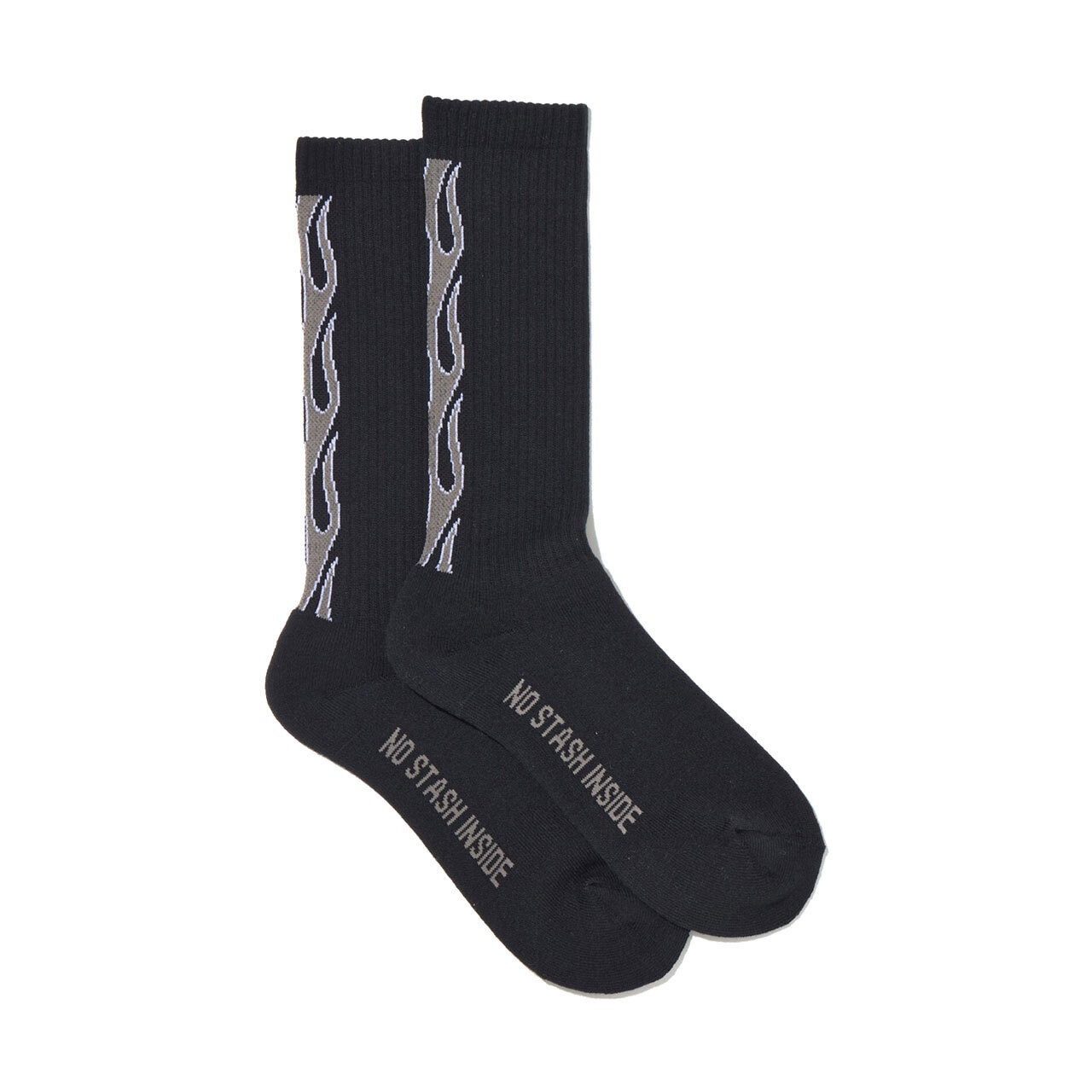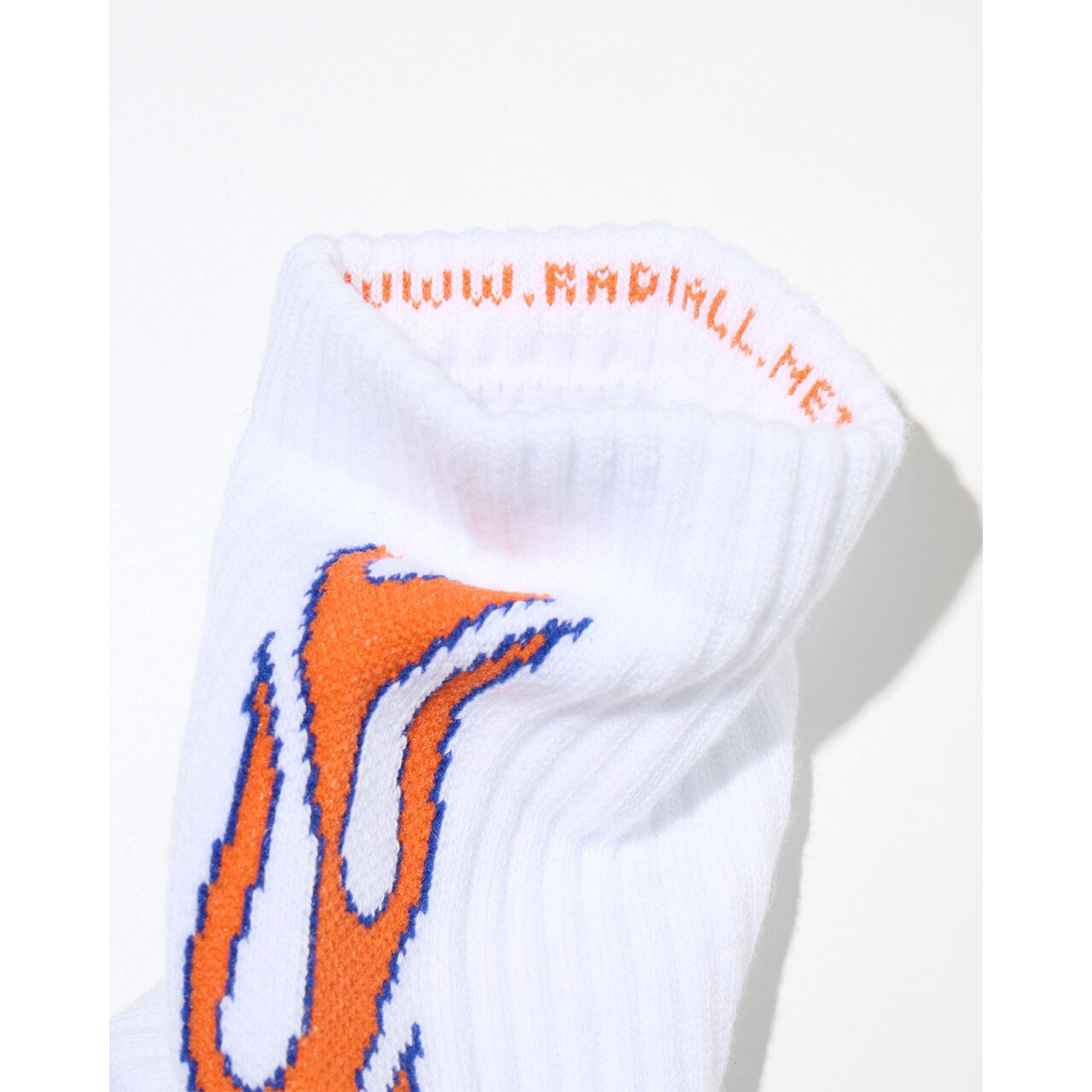 2/27(木) 在庫補充 / RADIALL (ラディアル) Flames 1PAC SOX LONG / DRALON ラディアル 靴下 メンズ ブランド おしゃれ 厚手 丈夫 頑丈 ハイソックス 長め ロング 綿 臭い 蒸れ対策 蒸れない パイル 地 靴下 男性 ブランド ソックス くつした 柄 白 黒 ギフト 日本製