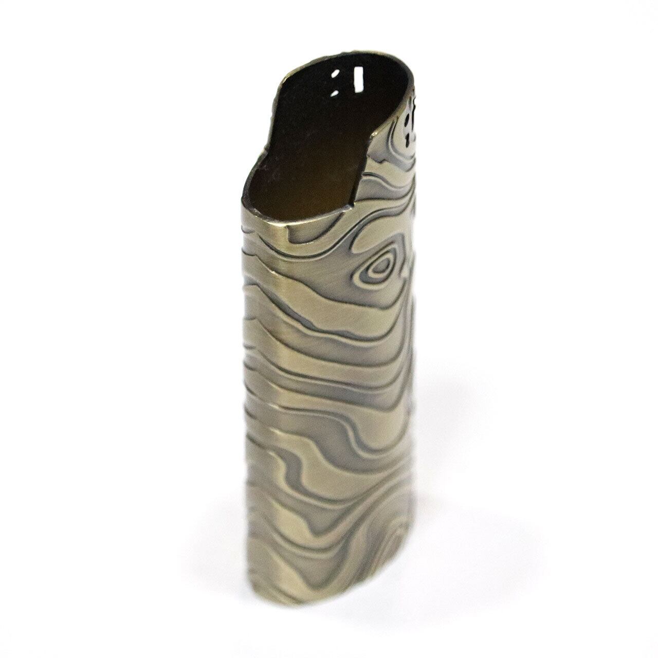 真鍮製のケースの表裏にサイケデリックなグラフィックがエンボス加工 (凹凸) で。
